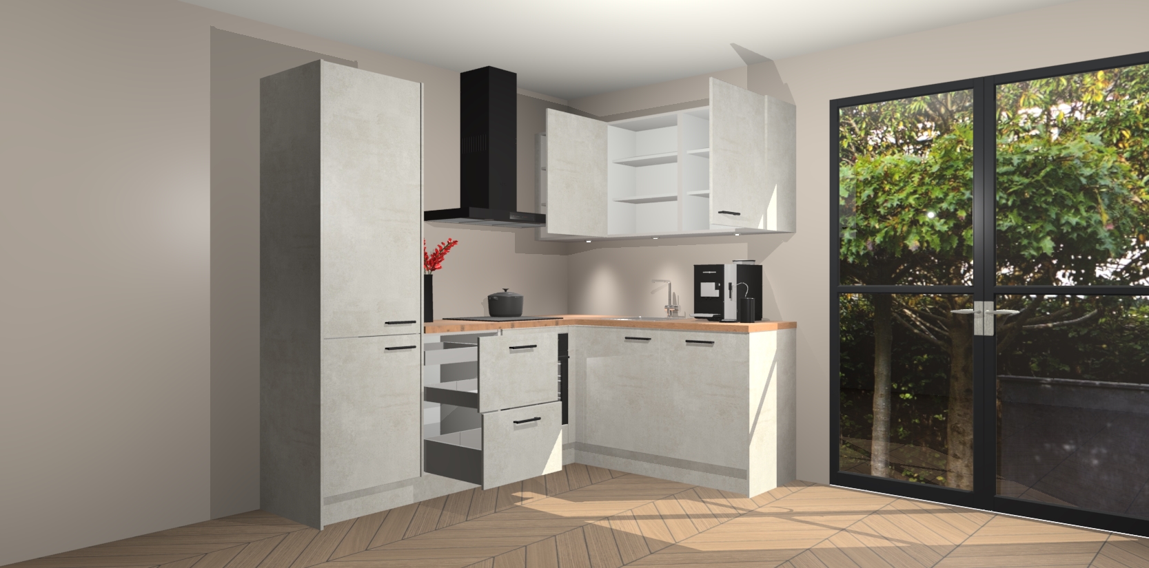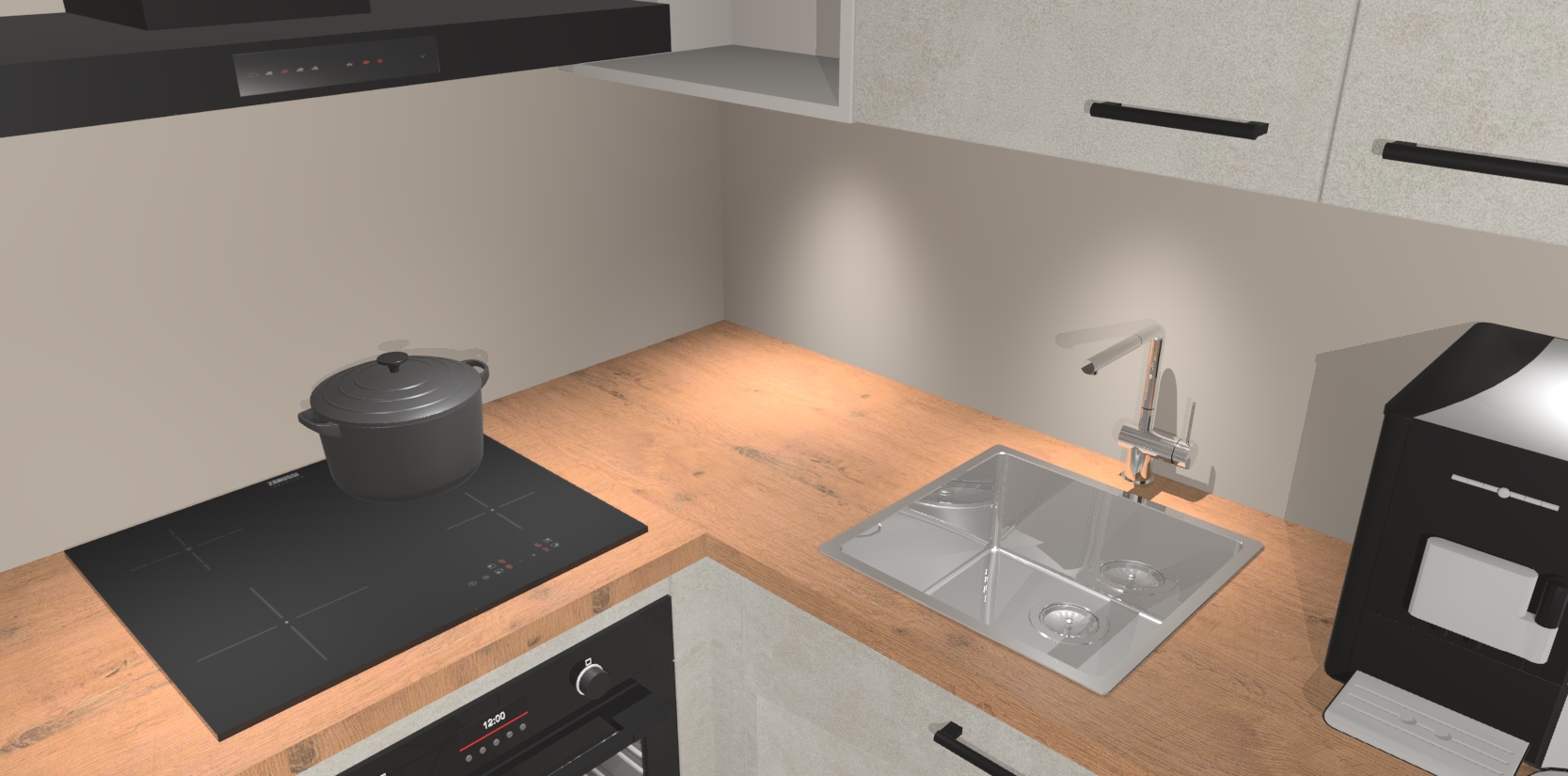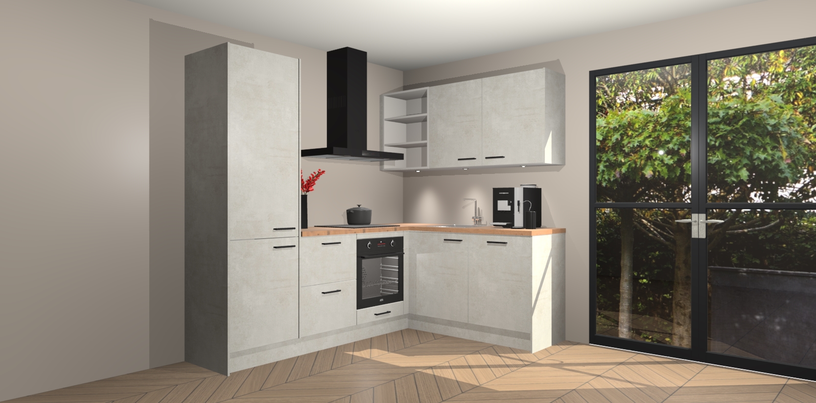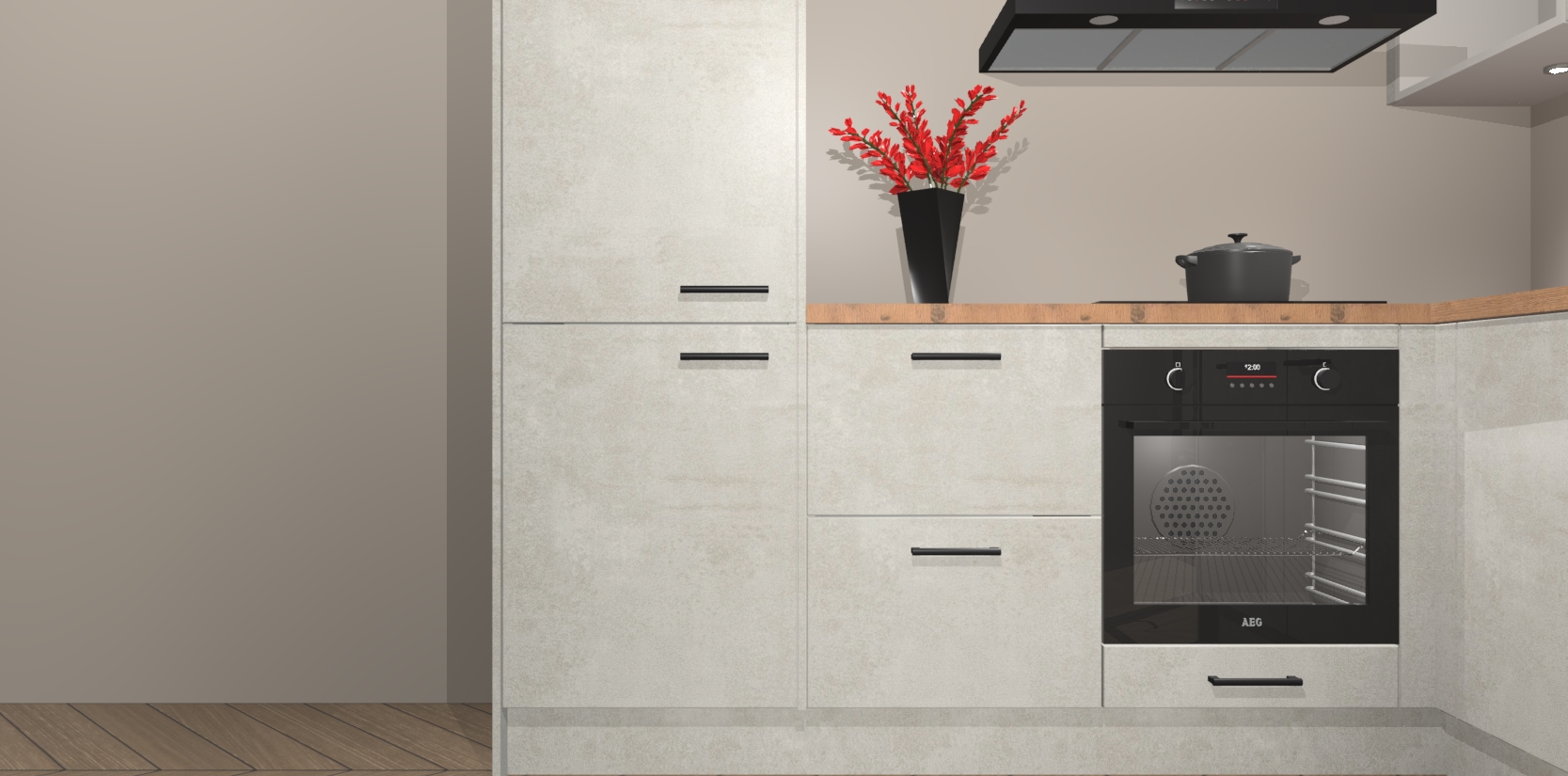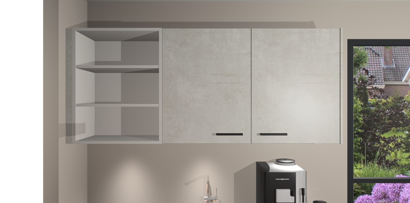 Wauw, dit is de Beton Opal keuken Pilsen! U kunt gerust zeggen dat u elegantie combineert met functionaliteit met deze keuken. Met een modern en chique ontwerp is de keuken precies wat u nodig heeft om uw ruimte te verfraaien. De binnenzijde van de kasten is in dezelfde donkere kleur als de buitenzijde voor een uniforme look, compleet met softclose-kasten die stil sluiten.