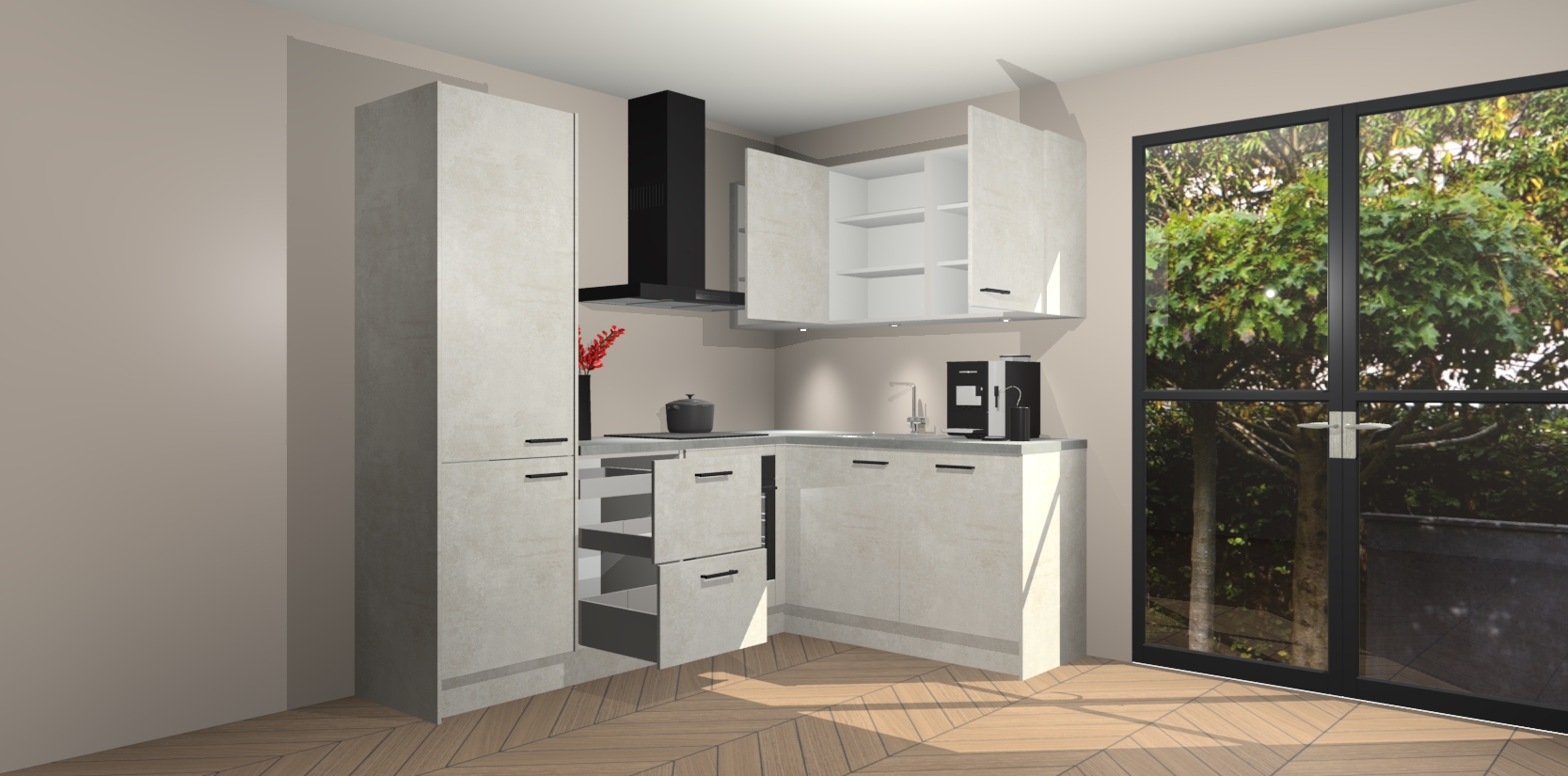 Wauw, dit is de Beton Opal keuken Pilsen! U kunt gerust zeggen dat u elegantie combineert met functionaliteit met deze keuken. Met een modern en chique ontwerp is de keuken precies wat u nodig heeft om uw ruimte te verfraaien. De binnenzijde van de kasten is in dezelfde donkere kleur als de buitenzijde voor een uniforme look, compleet met softclose-kasten die stil sluiten.