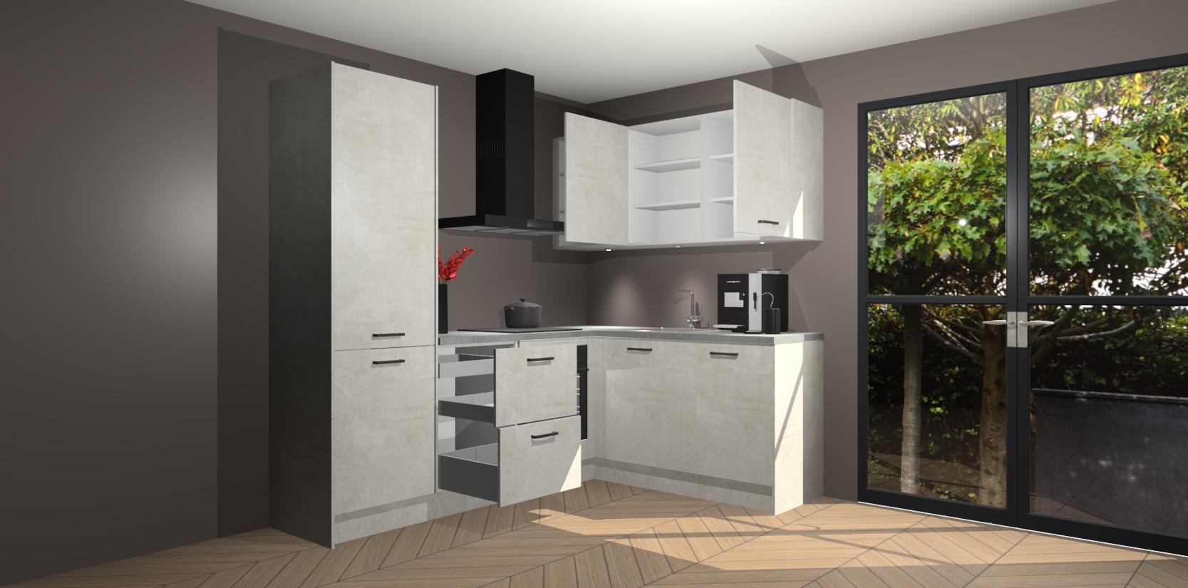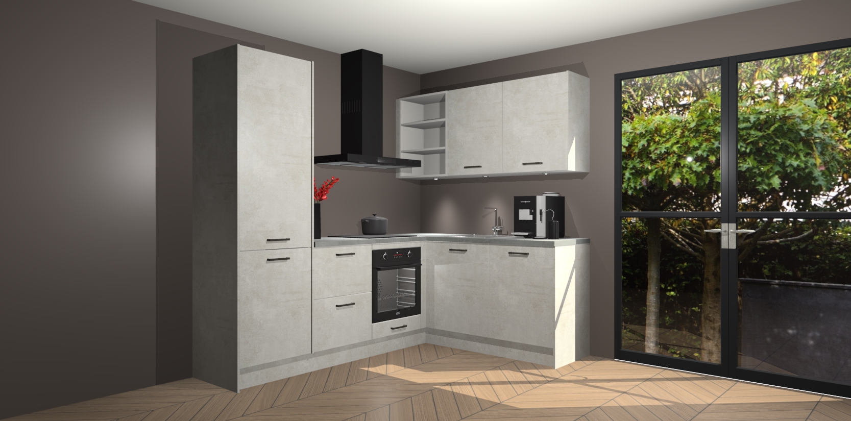 Wauw, dit is de Beton Opal keuken Pilsen! U kunt gerust zeggen dat u elegantie combineert met functionaliteit met deze keuken. Met een modern en chique ontwerp is de keuken precies wat u nodig heeft om uw ruimte te verfraaien. De binnenzijde van de kasten is in dezelfde donkere kleur als de buitenzijde voor een uniforme look, compleet met softclose-kasten die stil sluiten.