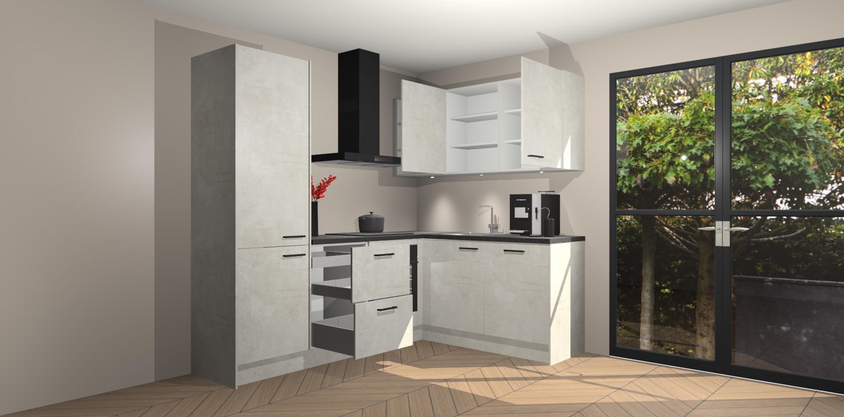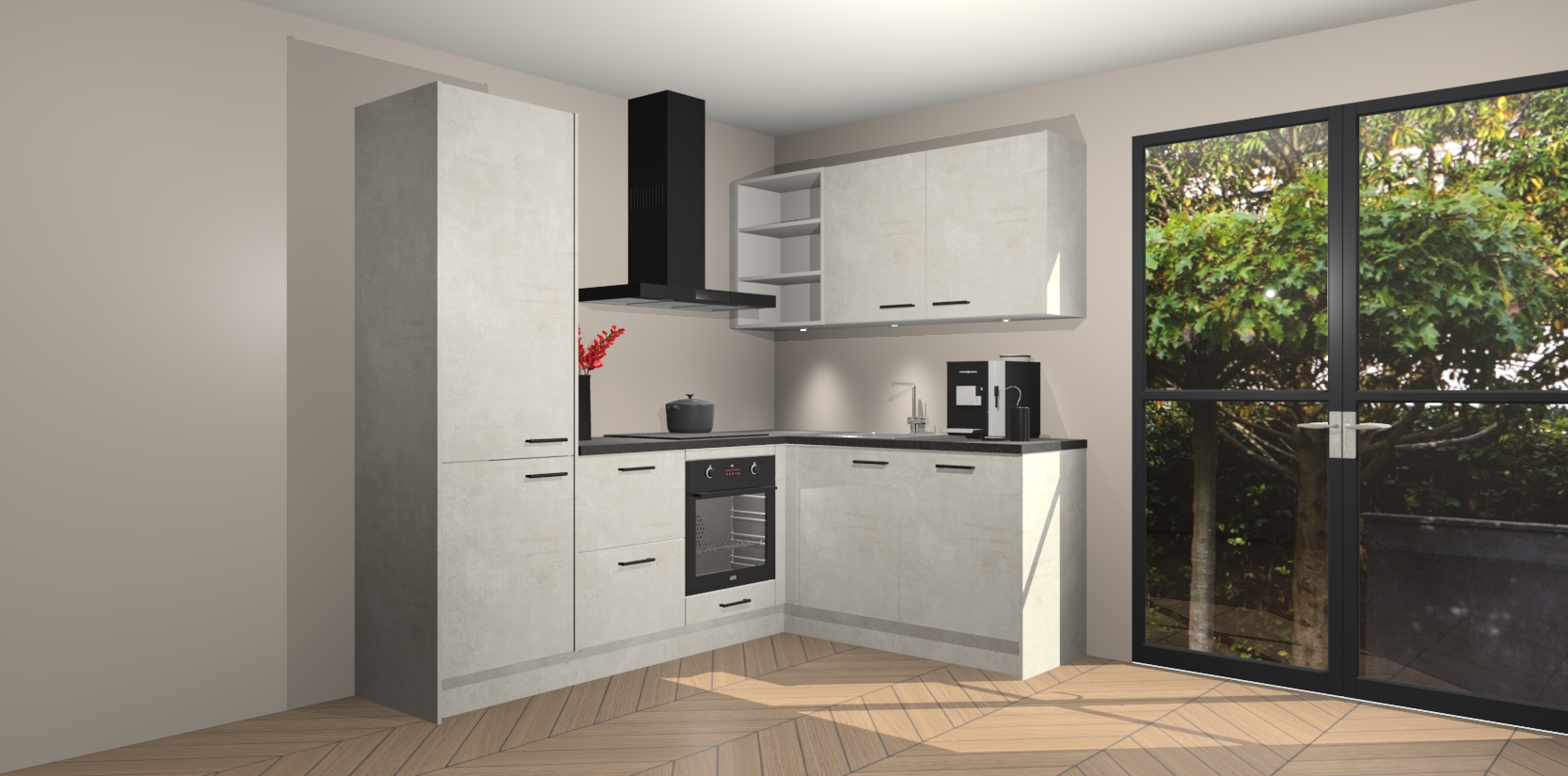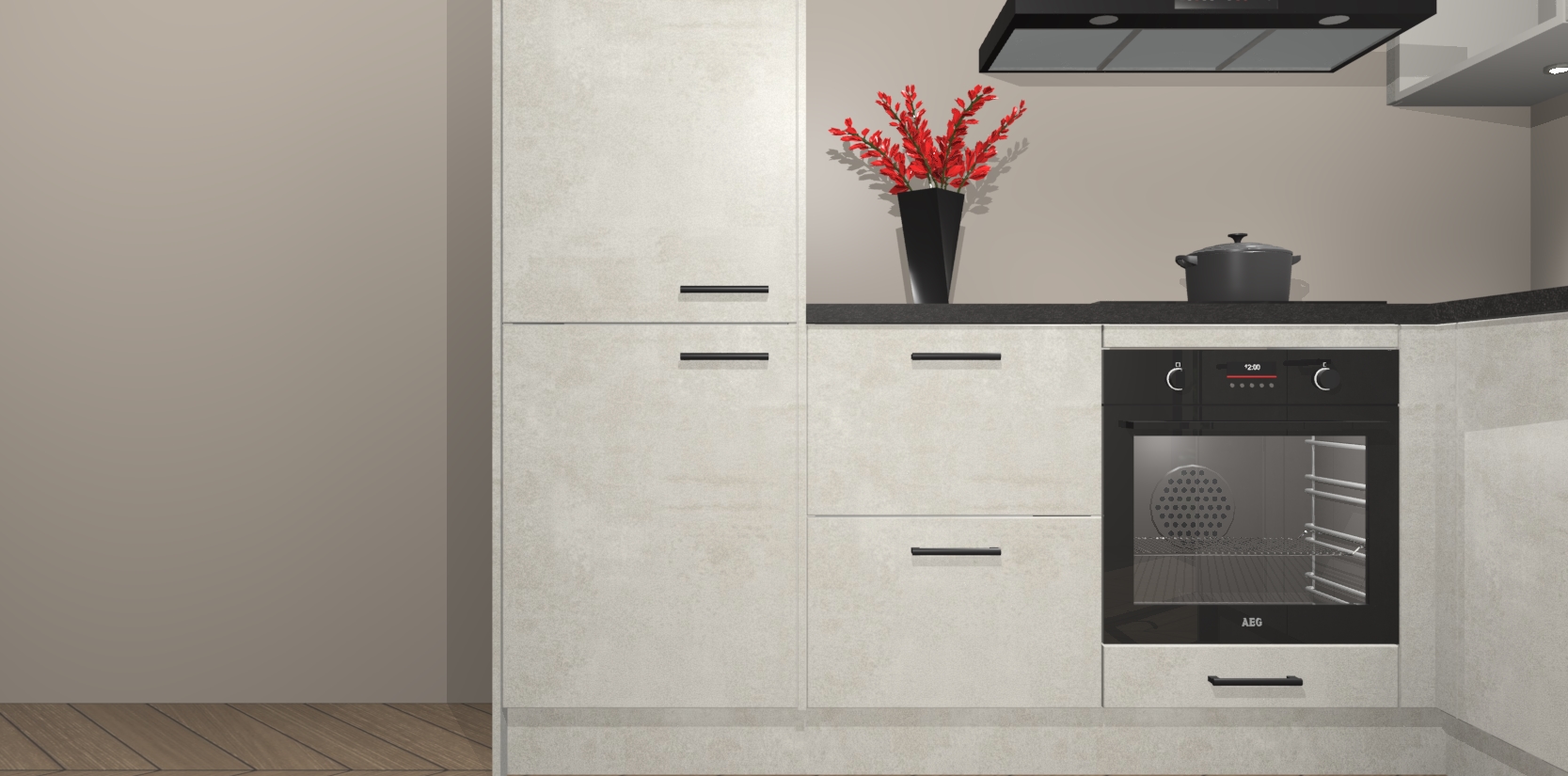 Wauw, dit is de Beton Opal keuken Pilsen! U kunt gerust zeggen dat u elegantie combineert met functionaliteit met deze keuken. Met een modern en chique ontwerp is de keuken precies wat u nodig heeft om uw ruimte te verfraaien. De binnenzijde van de kasten is in dezelfde donkere kleur als de buitenzijde voor een uniforme look, compleet met softclose-kasten die stil sluiten.
