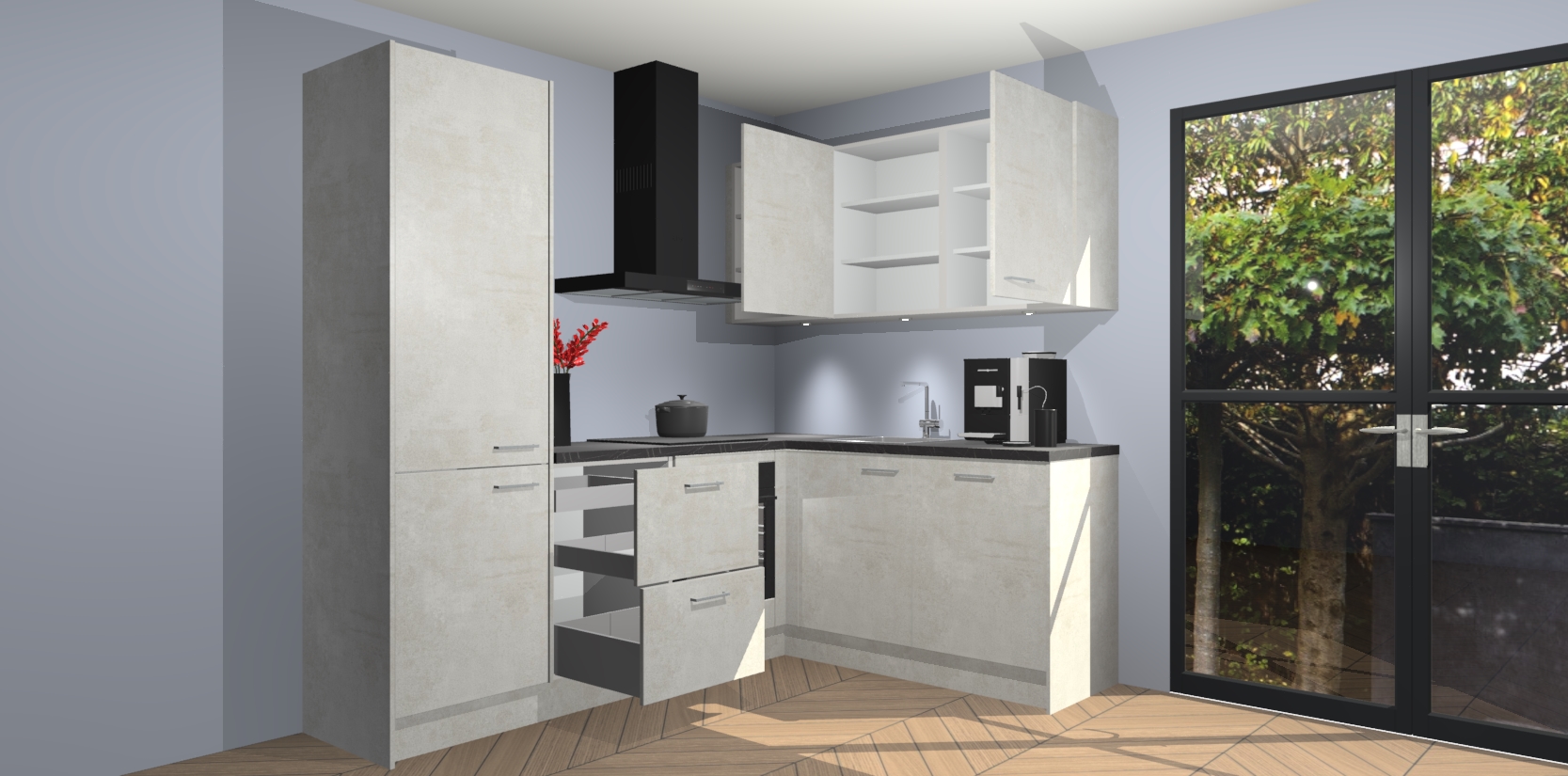 Wauw, dit is de Beton Opal keuken Pilsen! U kunt gerust zeggen dat u elegantie combineert met functionaliteit met deze keuken. Met een modern en chique ontwerp is de keuken precies wat u nodig heeft om uw ruimte te verfraaien. De binnenzijde van de kasten is in dezelfde donkere kleur als de buitenzijde voor een uniforme look, compleet met softclose-kasten die stil sluiten.