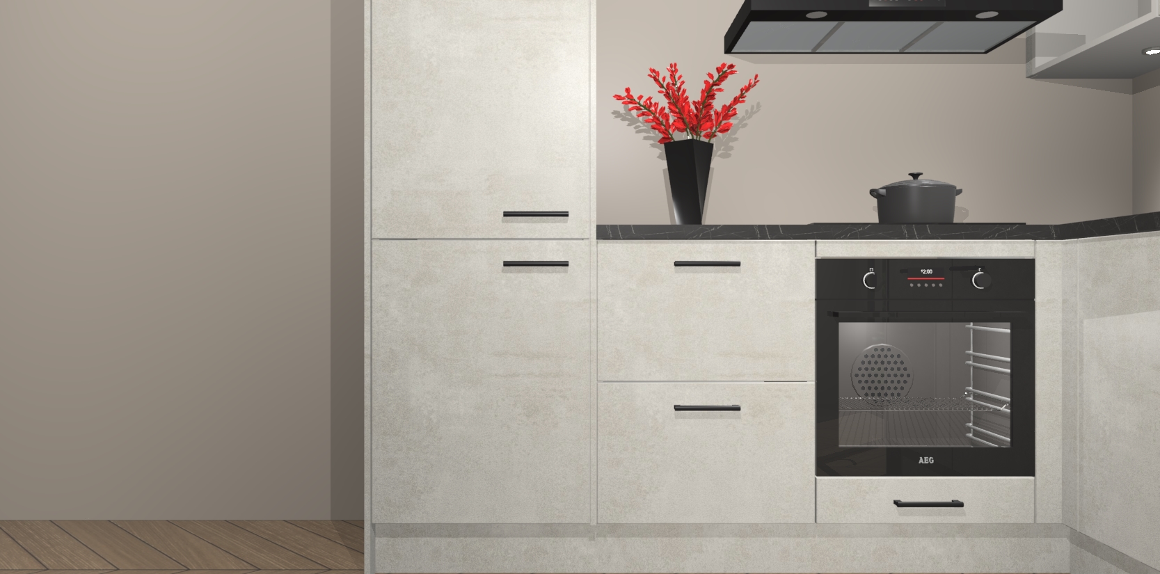 Wauw, dit is de Beton Opal keuken Pilsen! U kunt gerust zeggen dat u elegantie combineert met functionaliteit met deze keuken. Met een modern en chique ontwerp is de keuken precies wat u nodig heeft om uw ruimte te verfraaien. De binnenzijde van de kasten is in dezelfde donkere kleur als de buitenzijde voor een uniforme look, compleet met softclose-kasten die stil sluiten.