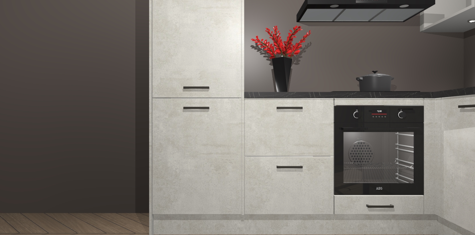Wauw, dit is de Beton Opal keuken Pilsen! U kunt gerust zeggen dat u elegantie combineert met functionaliteit met deze keuken. Met een modern en chique ontwerp is de keuken precies wat u nodig heeft om uw ruimte te verfraaien. De binnenzijde van de kasten is in dezelfde donkere kleur als de buitenzijde voor een uniforme look, compleet met softclose-kasten die stil sluiten.