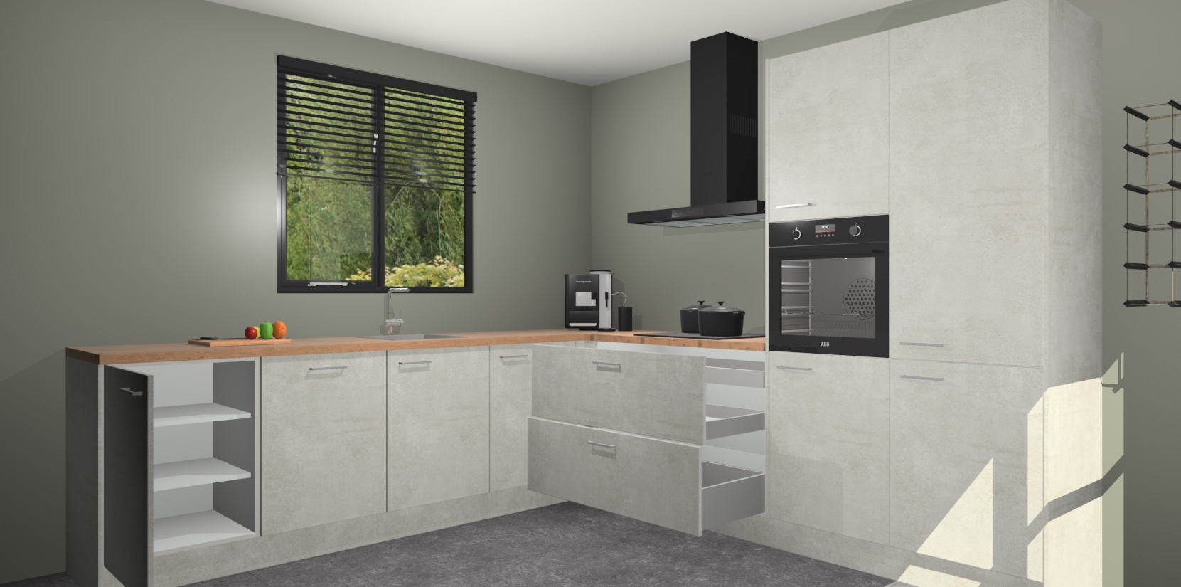 De Beton Opal keuken Porto heeft 5 ingebouwde apparaten - een oven, inductiekookplaat, afzuigkap, vaatwasser en koelkast - waarmee u in een handomdraai heerlijke gerechten bereidt. Soft-close deuren zorgen voor nog meer functionaliteit en gemak. En dit alles voor een onverslaanbaar vaste prijs. En als u nu bestelt, duurt de levering maar 7 weken! Wat nog ongelooflijker is, is dat onze kasten voor gemonteerd worden geleverd.