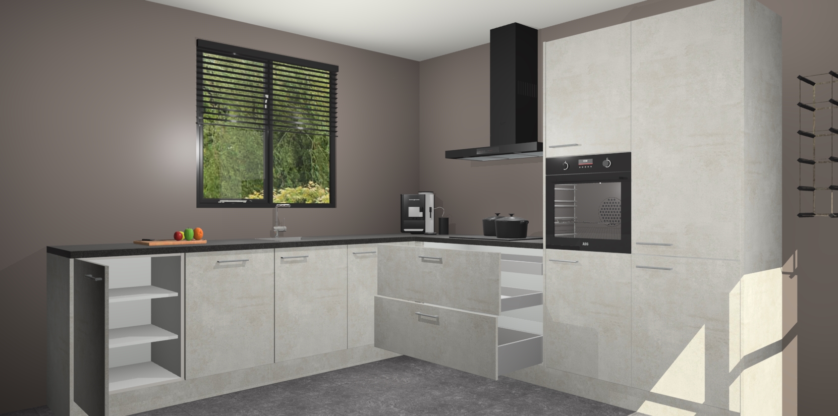 De Beton Opal keuken Porto heeft 5 ingebouwde apparaten - een oven, inductiekookplaat, afzuigkap, vaatwasser en koelkast - waarmee u in een handomdraai heerlijke gerechten bereidt. Soft-close deuren zorgen voor nog meer functionaliteit en gemak. En dit alles voor een onverslaanbaar vaste prijs. En als u nu bestelt, duurt de levering maar 7 weken! Wat nog ongelooflijker is, is dat onze kasten voor gemonteerd worden geleverd.