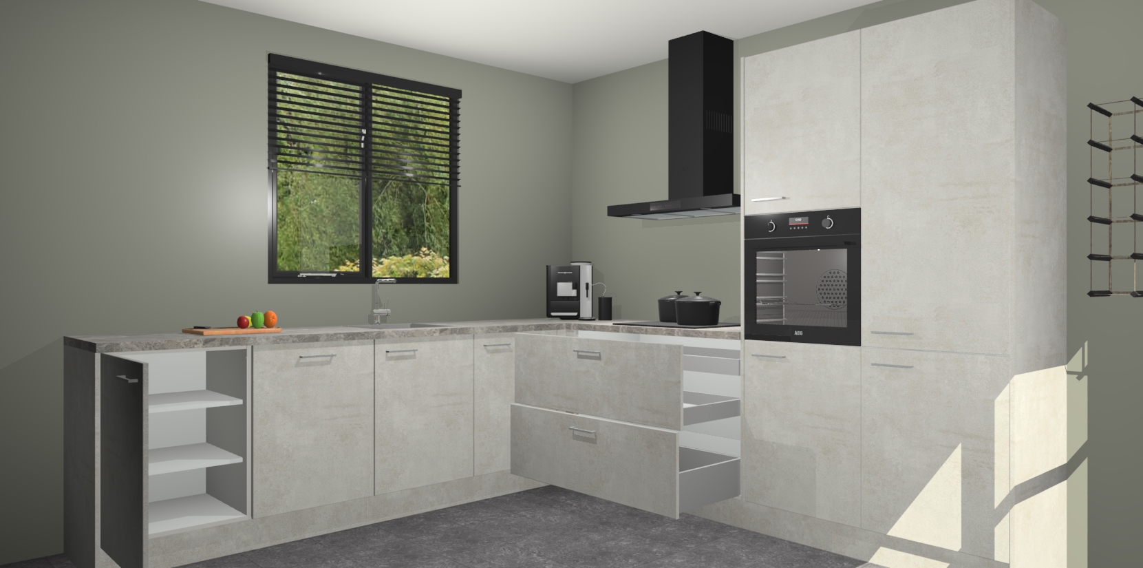 De Beton Opal keuken Porto heeft 5 ingebouwde apparaten - een oven, inductiekookplaat, afzuigkap, vaatwasser en koelkast - waarmee u in een handomdraai heerlijke gerechten bereidt. Soft-close deuren zorgen voor nog meer functionaliteit en gemak. En dit alles voor een onverslaanbaar vaste prijs. En als u nu bestelt, duurt de levering maar 7 weken! Wat nog ongelooflijker is, is dat onze kasten voor gemonteerd worden geleverd.