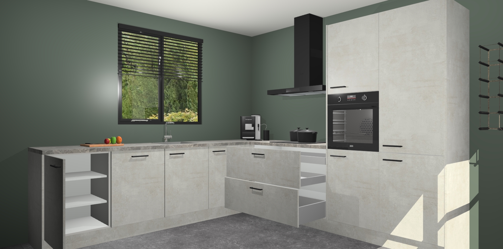 De Beton Opal keuken Porto heeft 5 ingebouwde apparaten - een oven, inductiekookplaat, afzuigkap, vaatwasser en koelkast - waarmee u in een handomdraai heerlijke gerechten bereidt. Soft-close deuren zorgen voor nog meer functionaliteit en gemak. En dit alles voor een onverslaanbaar vaste prijs. En als u nu bestelt, duurt de levering maar 7 weken! Wat nog ongelooflijker is, is dat onze kasten voor gemonteerd worden geleverd.