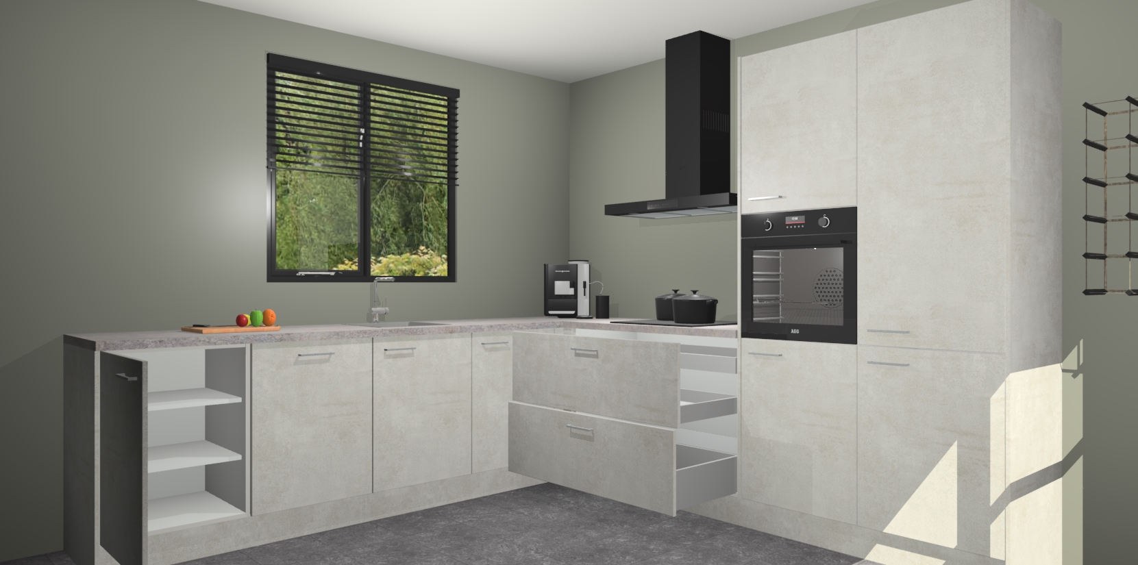 De Beton Opal keuken Porto heeft 5 ingebouwde apparaten - een oven, inductiekookplaat, afzuigkap, vaatwasser en koelkast - waarmee u in een handomdraai heerlijke gerechten bereidt. Soft-close deuren zorgen voor nog meer functionaliteit en gemak. En dit alles voor een onverslaanbaar vaste prijs. En als u nu bestelt, duurt de levering maar 7 weken! Wat nog ongelooflijker is, is dat onze kasten voor gemonteerd worden geleverd.