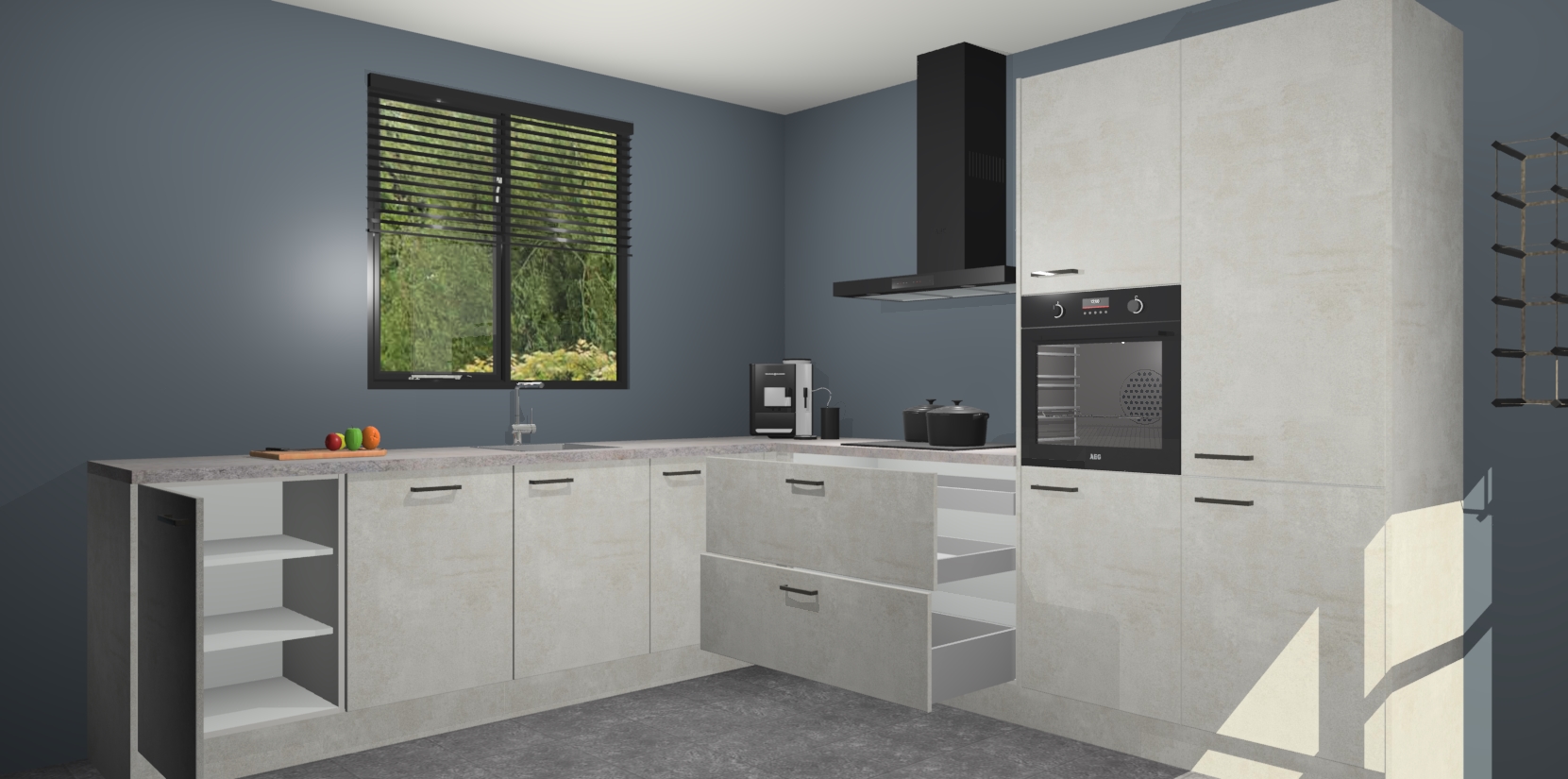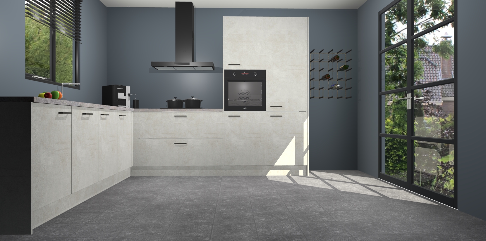 De Beton Opal keuken Porto heeft 5 ingebouwde apparaten - een oven, inductiekookplaat, afzuigkap, vaatwasser en koelkast - waarmee u in een handomdraai heerlijke gerechten bereidt. Soft-close deuren zorgen voor nog meer functionaliteit en gemak. En dit alles voor een onverslaanbaar vaste prijs. En als u nu bestelt, duurt de levering maar 7 weken! Wat nog ongelooflijker is, is dat onze kasten voor gemonteerd worden geleverd.