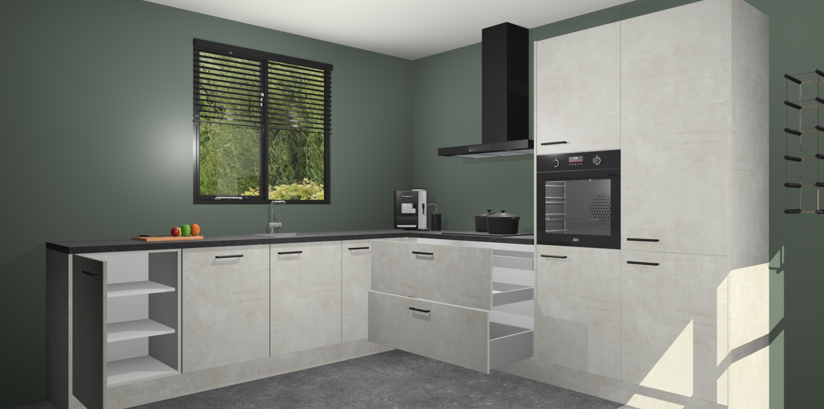 De Beton Opal keuken Porto heeft 5 ingebouwde apparaten - een oven, inductiekookplaat, afzuigkap, vaatwasser en koelkast - waarmee u in een handomdraai heerlijke gerechten bereidt. Soft-close deuren zorgen voor nog meer functionaliteit en gemak. En dit alles voor een onverslaanbaar vaste prijs. En als u nu bestelt, duurt de levering maar 7 weken! Wat nog ongelooflijker is, is dat onze kasten voor gemonteerd worden geleverd.