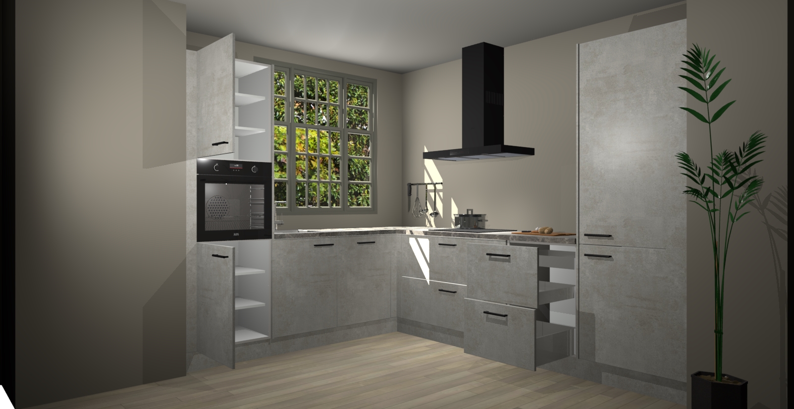Inclusief plinten, stelpoten en werkblad