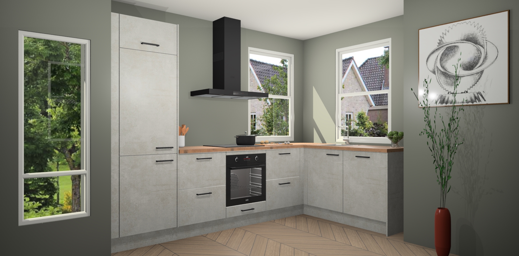 Welkom bij de Beton Opal keuken Salzburg! Met een chique combinatie van een prachtig houten werkblad, klassiek design en altijd concurrerende prijzen is de Beton Opal keuken Salzburg de keuken van uw dromen! Deze keuken is perfect voor alle huisformaten en decorstijlen en straalt stijl en verfijning uit. Van het tijdloze design tot de functionele functies, er is geen betere manier om de look van uw woon- of kookruimte te verbeteren.