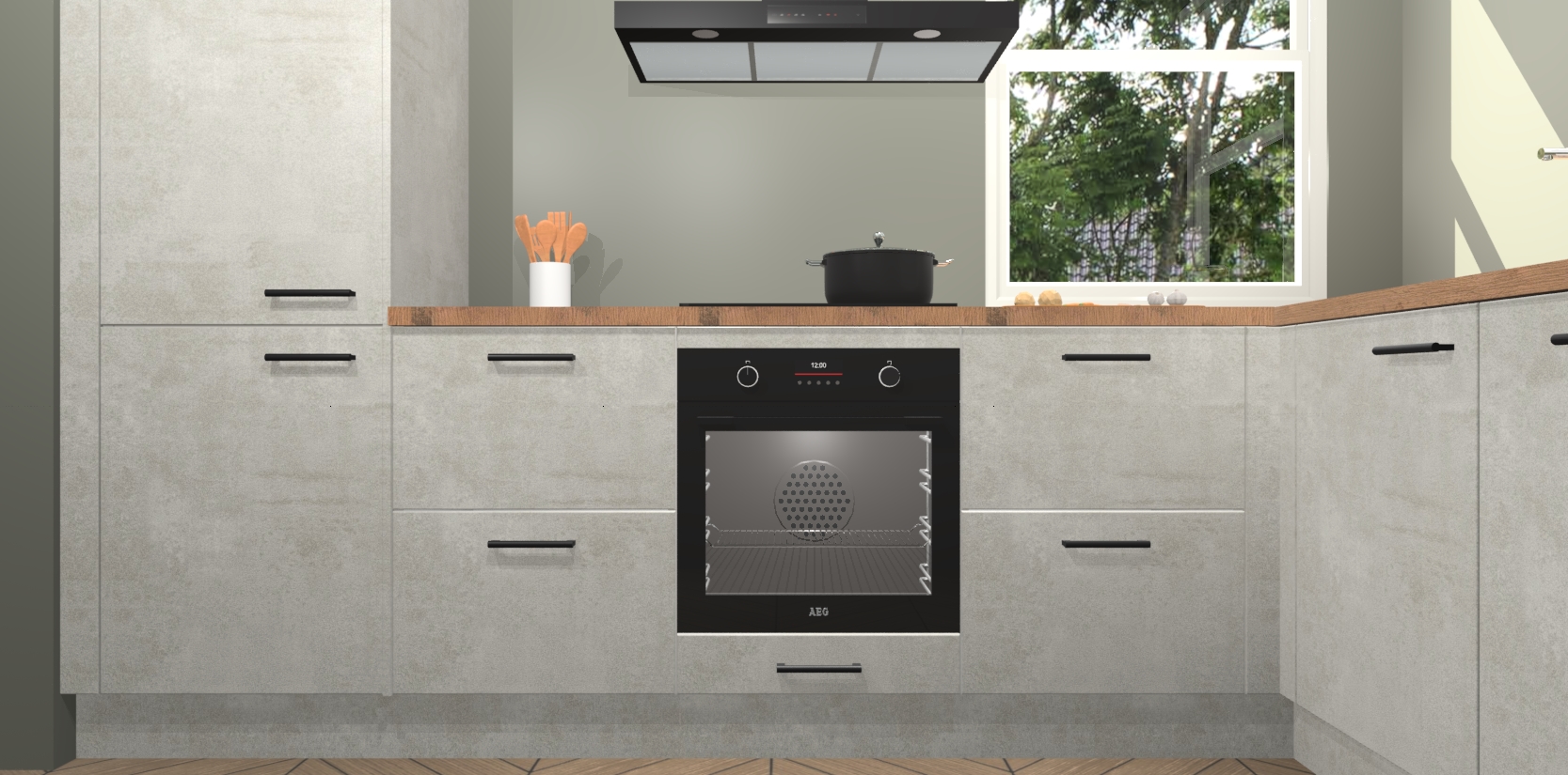 Wat maakt deze keuken zo bijzonder? Ten eerste geeft het houten werkblad uw ruimte een onmiskenbaar klassieke uitstraling. De natuurlijke afwerking roept warmte en elegantie op die nooit uit de mode zullen raken. Bovendien is het gemakkelijk schoon te houden en te onderhouden, zodat je er jarenlang plezier van kunt hebben. Als u op zoek bent naar extra gemak in uw keuken, dan heeft u bij het plaatsen van een bestelling bij ons ook de optie om uw toestellen te upgraden naar AEG-modellen - zo haalt u moderne innovatie van topmerken in apparatentechnologie rechtstreeks in huis.
