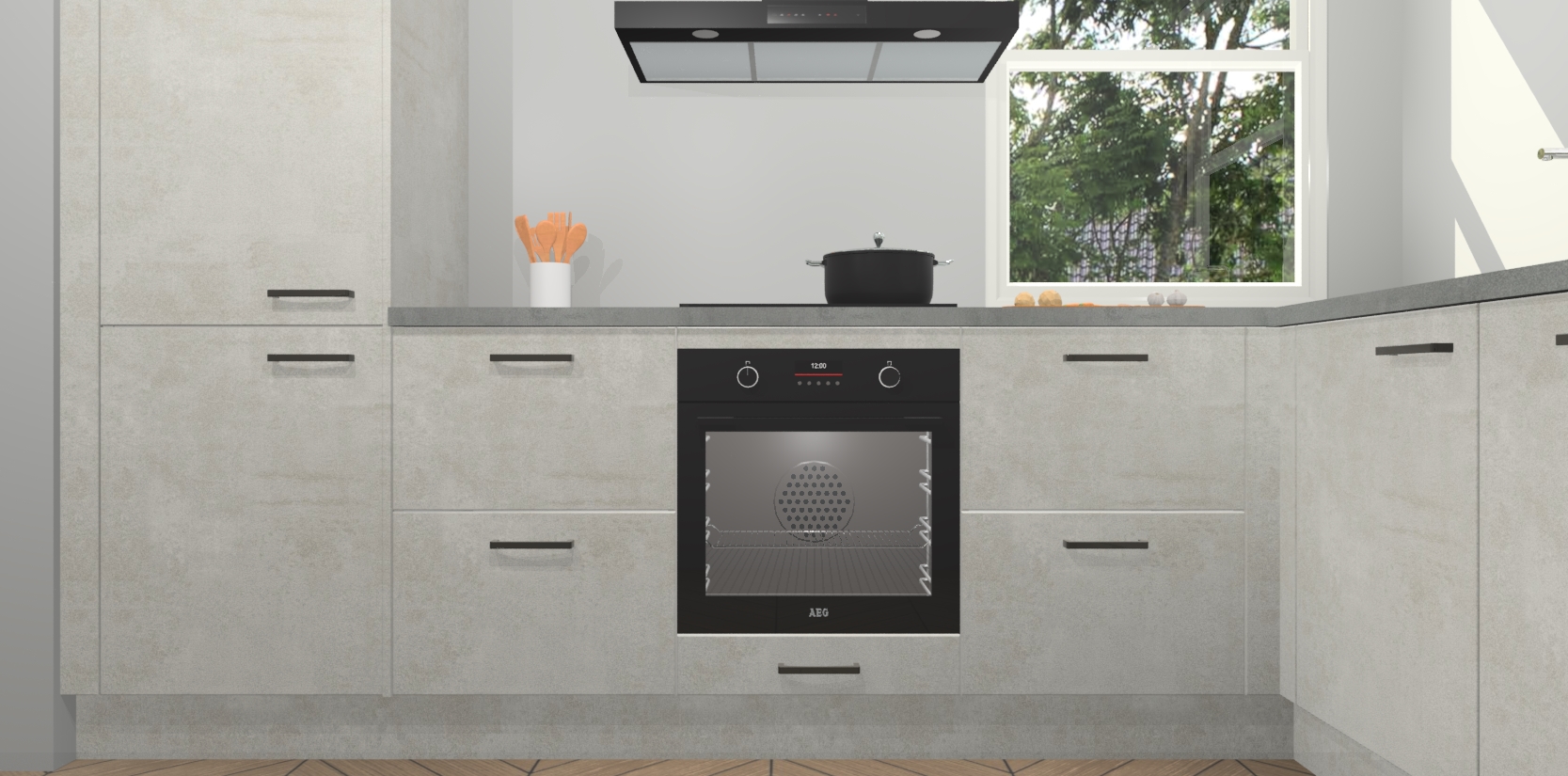 Wat maakt deze keuken zo bijzonder? Ten eerste geeft het houten werkblad uw ruimte een onmiskenbaar klassieke uitstraling. De natuurlijke afwerking roept warmte en elegantie op die nooit uit de mode zullen raken. Bovendien is het gemakkelijk schoon te houden en te onderhouden, zodat je er jarenlang plezier van kunt hebben. Als u op zoek bent naar extra gemak in uw keuken, dan heeft u bij het plaatsen van een bestelling bij ons ook de optie om uw toestellen te upgraden naar AEG-modellen - zo haalt u moderne innovatie van topmerken in apparatentechnologie rechtstreeks in huis.