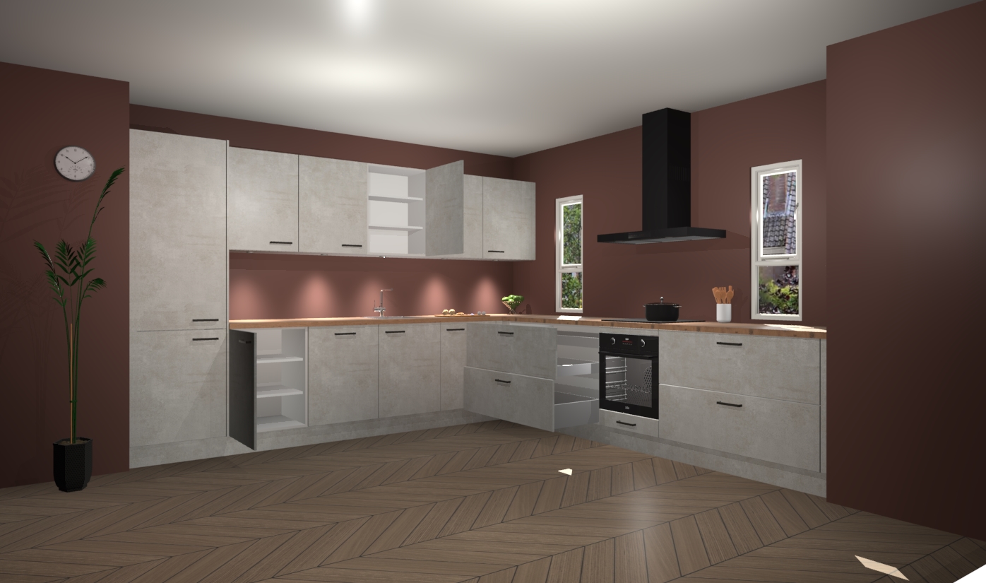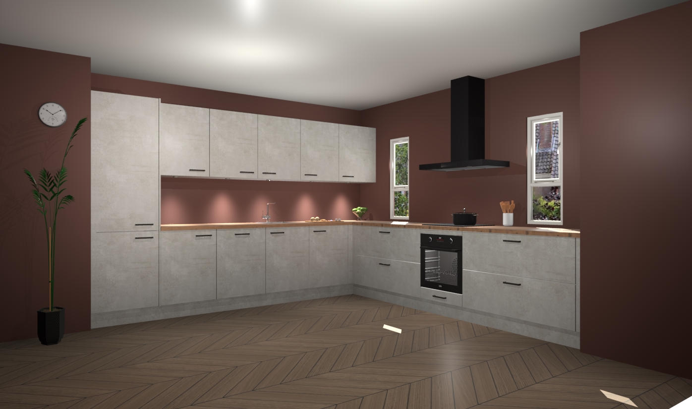 De beton opal keuken is een ideale hoekkeuken en heeft alle functies en apparatuur die u maar nodig kunt hebben. Bij de bestelling krijgt u een oven, inductiekookplaat, afzuigkap, vaatwasser en koelkast - deze kunnen desgewenst eenvoudig worden uitgebreid naar AEG na bestellen. Elke kast wordt ook voor gemonteerd geleverd met soft close deuren die jarenlang gebruik beloven. Stelt u zich voor dat u geen gedoe heeft met vervelende montage - vanaf het moment dat u uw bestelling plaats, duurt het slechts 7 weken voor het bij u thuis geleverd wordt.