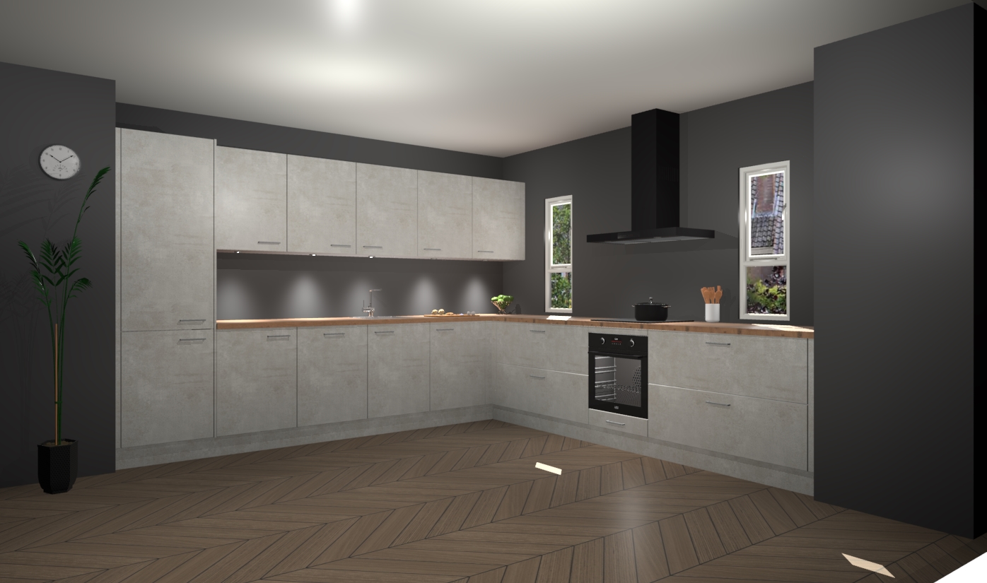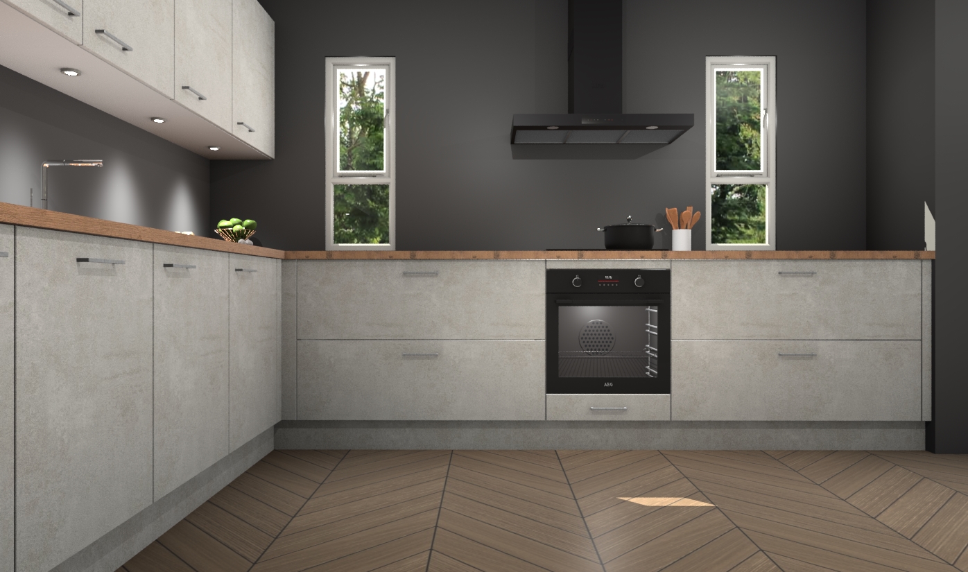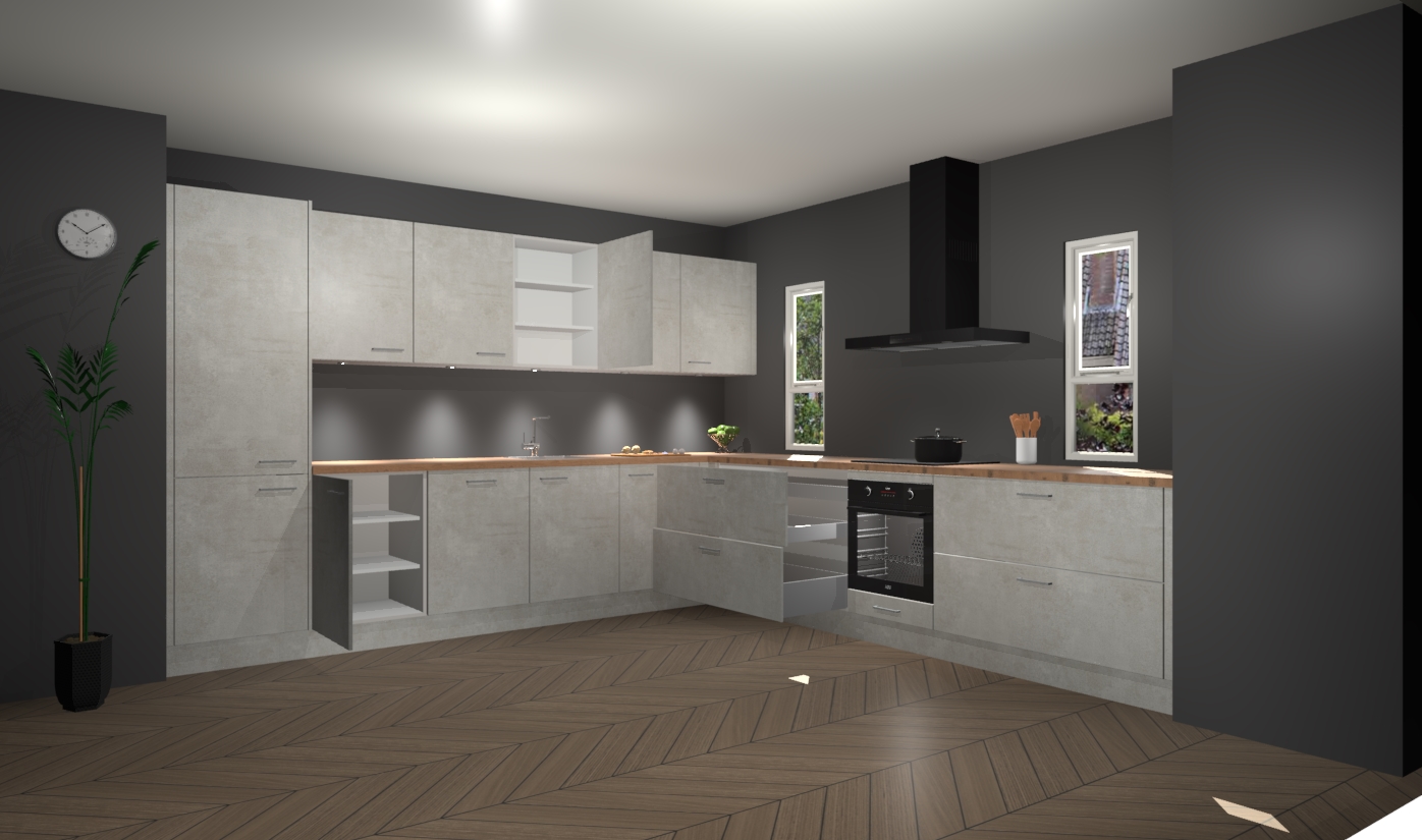 De beton opal keuken is een ideale hoekkeuken en heeft alle functies en apparatuur die u maar nodig kunt hebben. Bij de bestelling krijgt u een oven, inductiekookplaat, afzuigkap, vaatwasser en koelkast - deze kunnen desgewenst eenvoudig worden uitgebreid naar AEG na bestellen. Elke kast wordt ook voor gemonteerd geleverd met soft close deuren die jarenlang gebruik beloven. Stelt u zich voor dat u geen gedoe heeft met vervelende montage - vanaf het moment dat u uw bestelling plaats, duurt het slechts 7 weken voor het bij u thuis geleverd wordt.