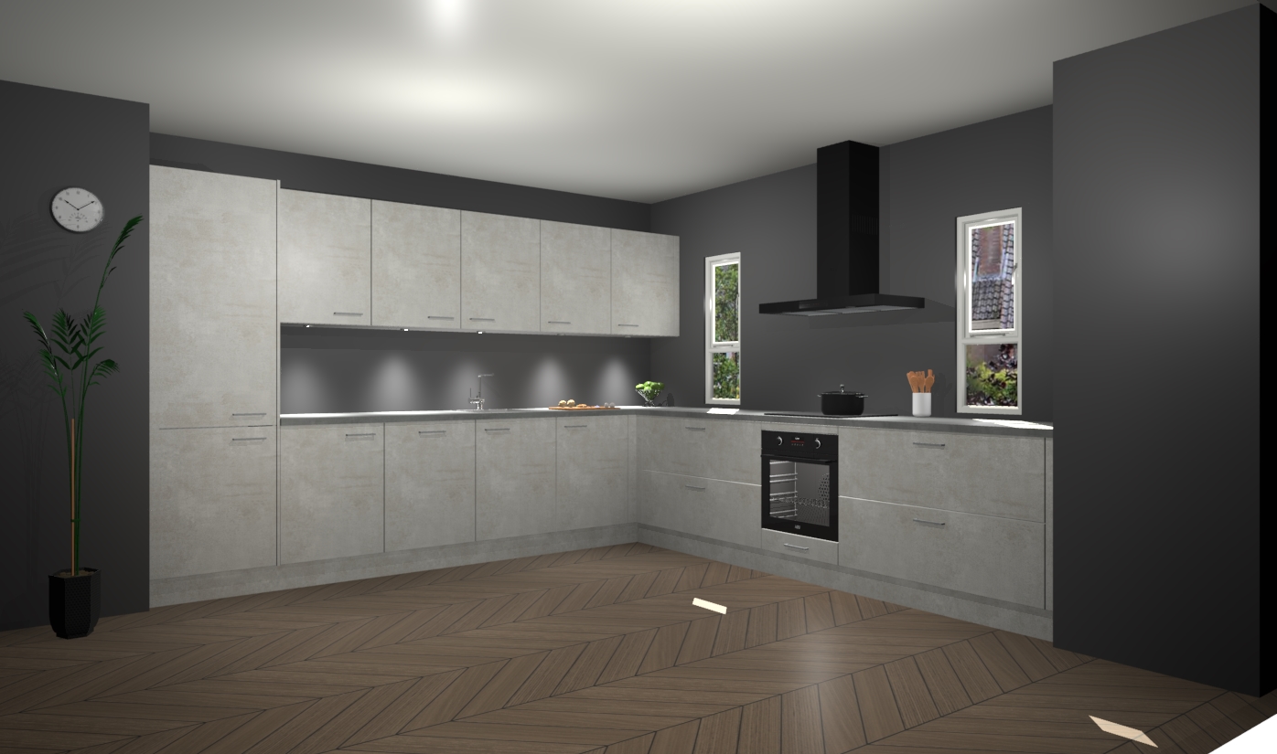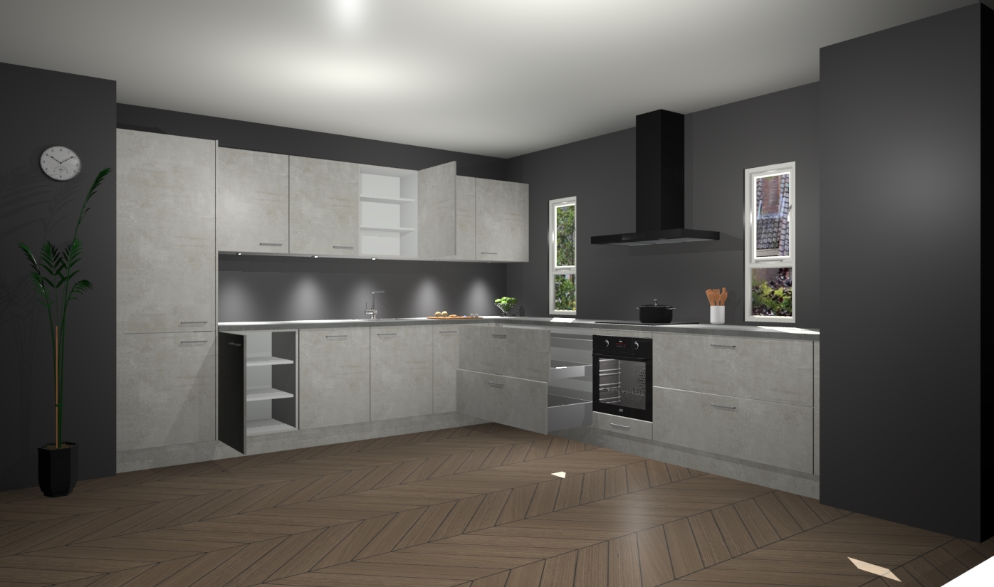 De beton opal keuken is een ideale hoekkeuken en heeft alle functies en apparatuur die u maar nodig kunt hebben. Bij de bestelling krijgt u een oven, inductiekookplaat, afzuigkap, vaatwasser en koelkast - deze kunnen desgewenst eenvoudig worden uitgebreid naar AEG na bestellen. Elke kast wordt ook voor gemonteerd geleverd met soft close deuren die jarenlang gebruik beloven. Stelt u zich voor dat u geen gedoe heeft met vervelende montage - vanaf het moment dat u uw bestelling plaats, duurt het slechts 7 weken voor het bij u thuis geleverd wordt.