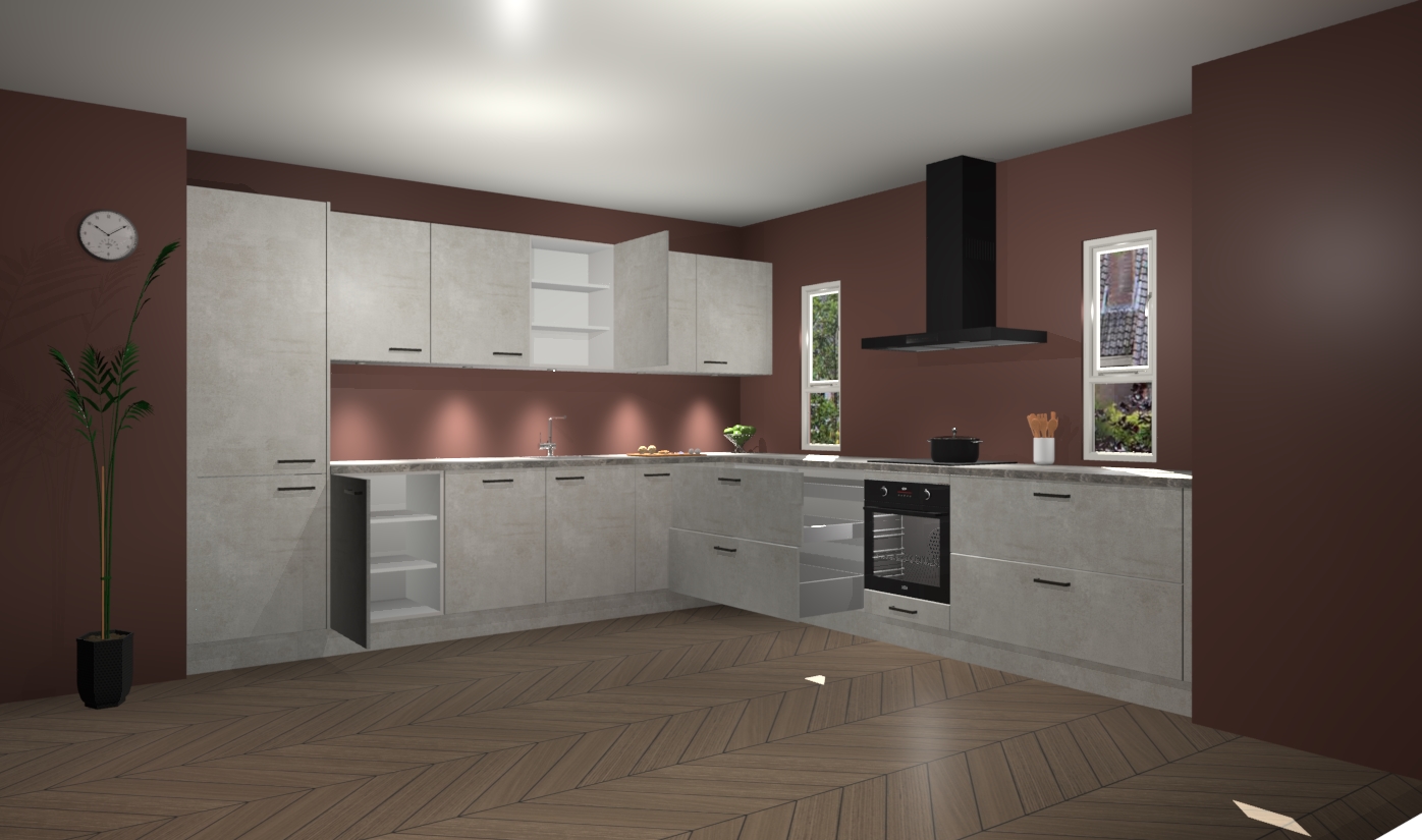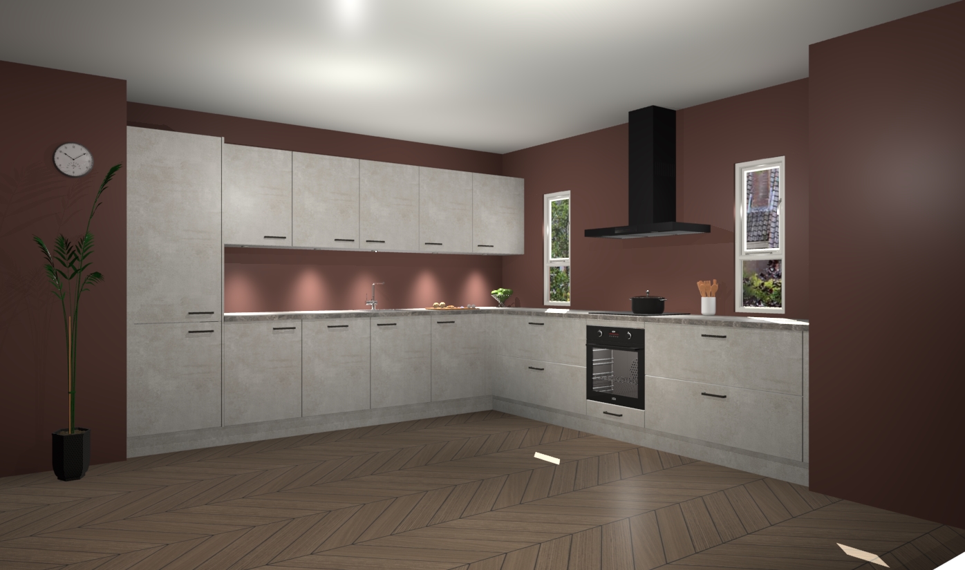 De beton opal keuken is een ideale hoekkeuken en heeft alle functies en apparatuur die u maar nodig kunt hebben. Bij de bestelling krijgt u een oven, inductiekookplaat, afzuigkap, vaatwasser en koelkast - deze kunnen desgewenst eenvoudig worden uitgebreid naar AEG na bestellen. Elke kast wordt ook voor gemonteerd geleverd met soft close deuren die jarenlang gebruik beloven. Stelt u zich voor dat u geen gedoe heeft met vervelende montage - vanaf het moment dat u uw bestelling plaats, duurt het slechts 7 weken voor het bij u thuis geleverd wordt.