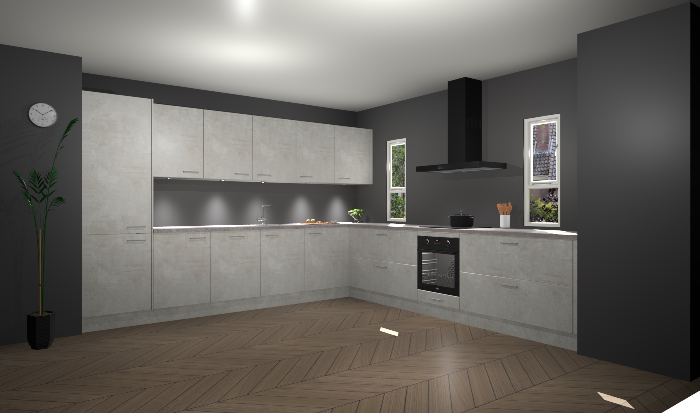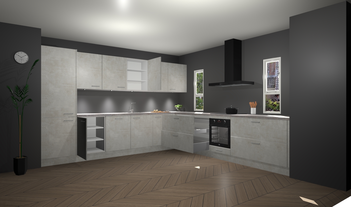 De beton opal keuken is een ideale hoekkeuken en heeft alle functies en apparatuur die u maar nodig kunt hebben. Bij de bestelling krijgt u een oven, inductiekookplaat, afzuigkap, vaatwasser en koelkast - deze kunnen desgewenst eenvoudig worden uitgebreid naar AEG na bestellen. Elke kast wordt ook voor gemonteerd geleverd met soft close deuren die jarenlang gebruik beloven. Stelt u zich voor dat u geen gedoe heeft met vervelende montage - vanaf het moment dat u uw bestelling plaats, duurt het slechts 7 weken voor het bij u thuis geleverd wordt.