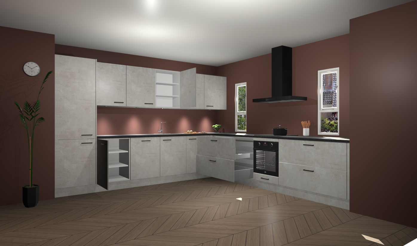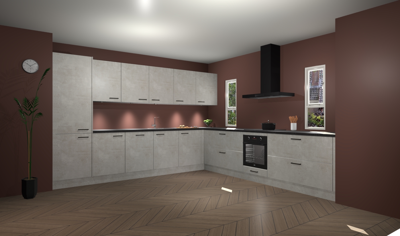 De beton opal keuken is een ideale hoekkeuken en heeft alle functies en apparatuur die u maar nodig kunt hebben. Bij de bestelling krijgt u een oven, inductiekookplaat, afzuigkap, vaatwasser en koelkast - deze kunnen desgewenst eenvoudig worden uitgebreid naar AEG na bestellen. Elke kast wordt ook voor gemonteerd geleverd met soft close deuren die jarenlang gebruik beloven. Stelt u zich voor dat u geen gedoe heeft met vervelende montage - vanaf het moment dat u uw bestelling plaats, duurt het slechts 7 weken voor het bij u thuis geleverd wordt.