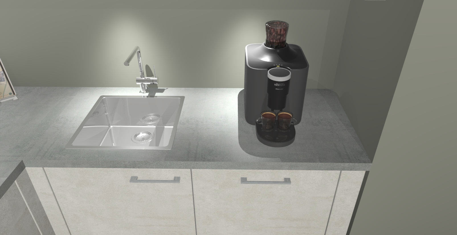 - De spoelbak is nog niet in gevreesd. Dit dient tijdens het werk gedaan te worden