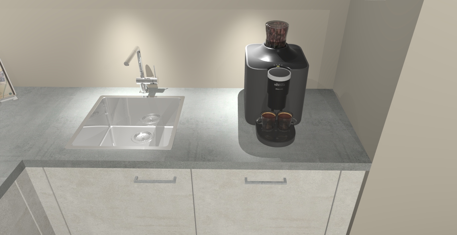 - De spoelbak is nog niet in gevreesd. Dit dient tijdens het werk gedaan te worden