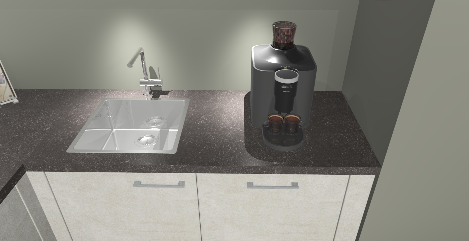 - De spoelbak is nog niet in gevreesd. Dit dient tijdens het werk gedaan te worden