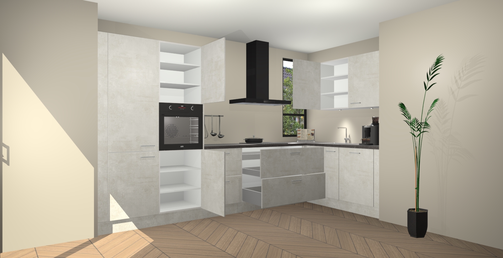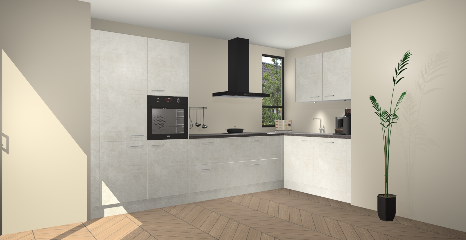 Welkom in uw nieuwe moderne keuken! Laat ons u voorstellen aan de Beton Opal keuken Vlaanderen . Deze prachtige hoekkeuken straalt exclusiviteit en luxe uit als geen ander. Het strakke design, de tijdloze kleuren en het model maken van deze keuken een moderne klassieker. En met voldoende opbergruimte heeft deze keuken echt voor ieder wat wils.