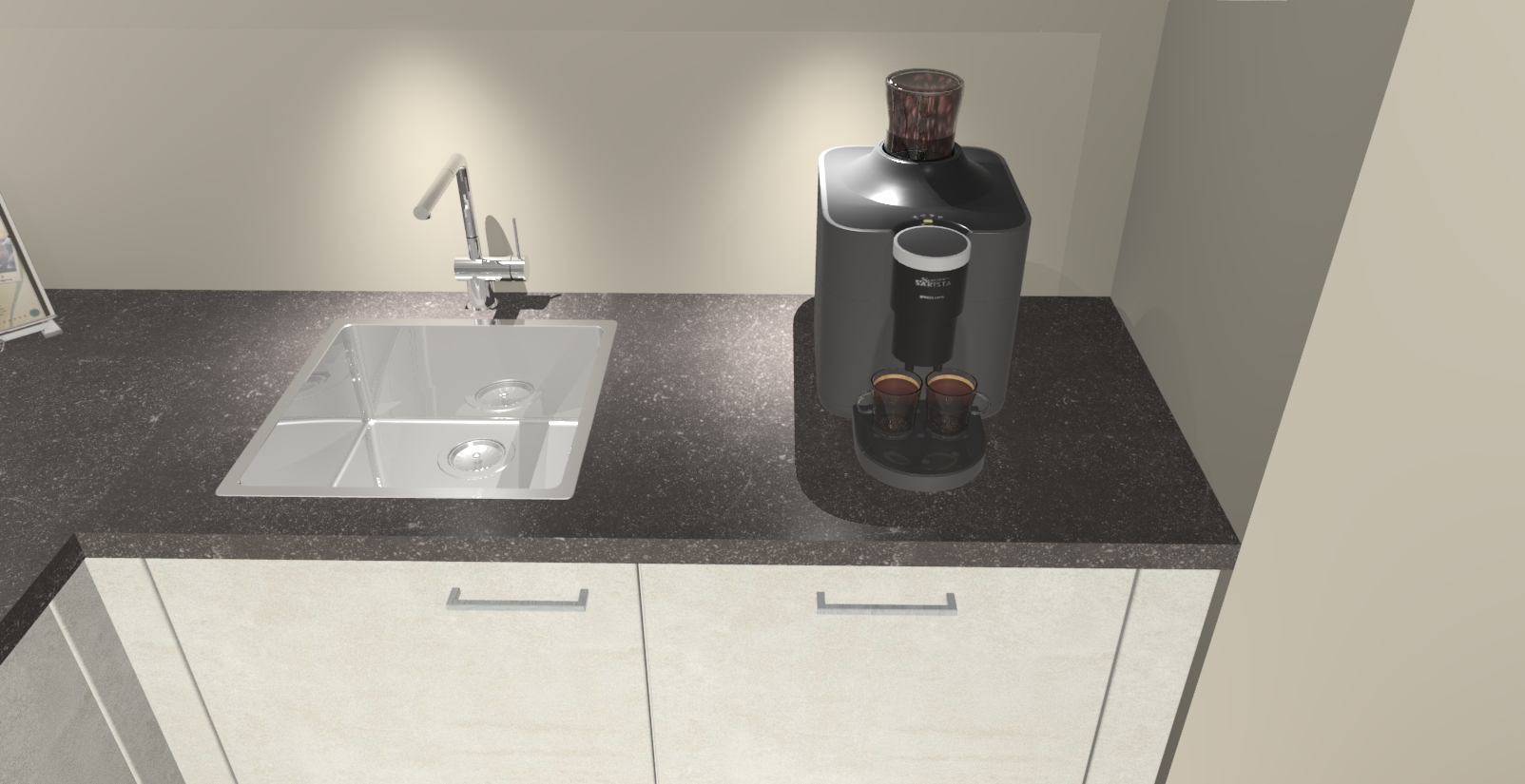 - De spoelbak is nog niet in gevreesd. Dit dient tijdens het werk gedaan te worden