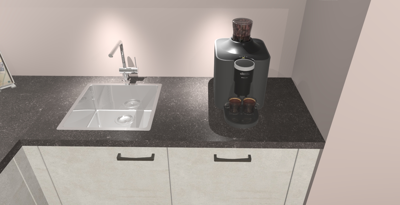 - De spoelbak is nog niet in gevreesd. Dit dient tijdens het werk gedaan te worden