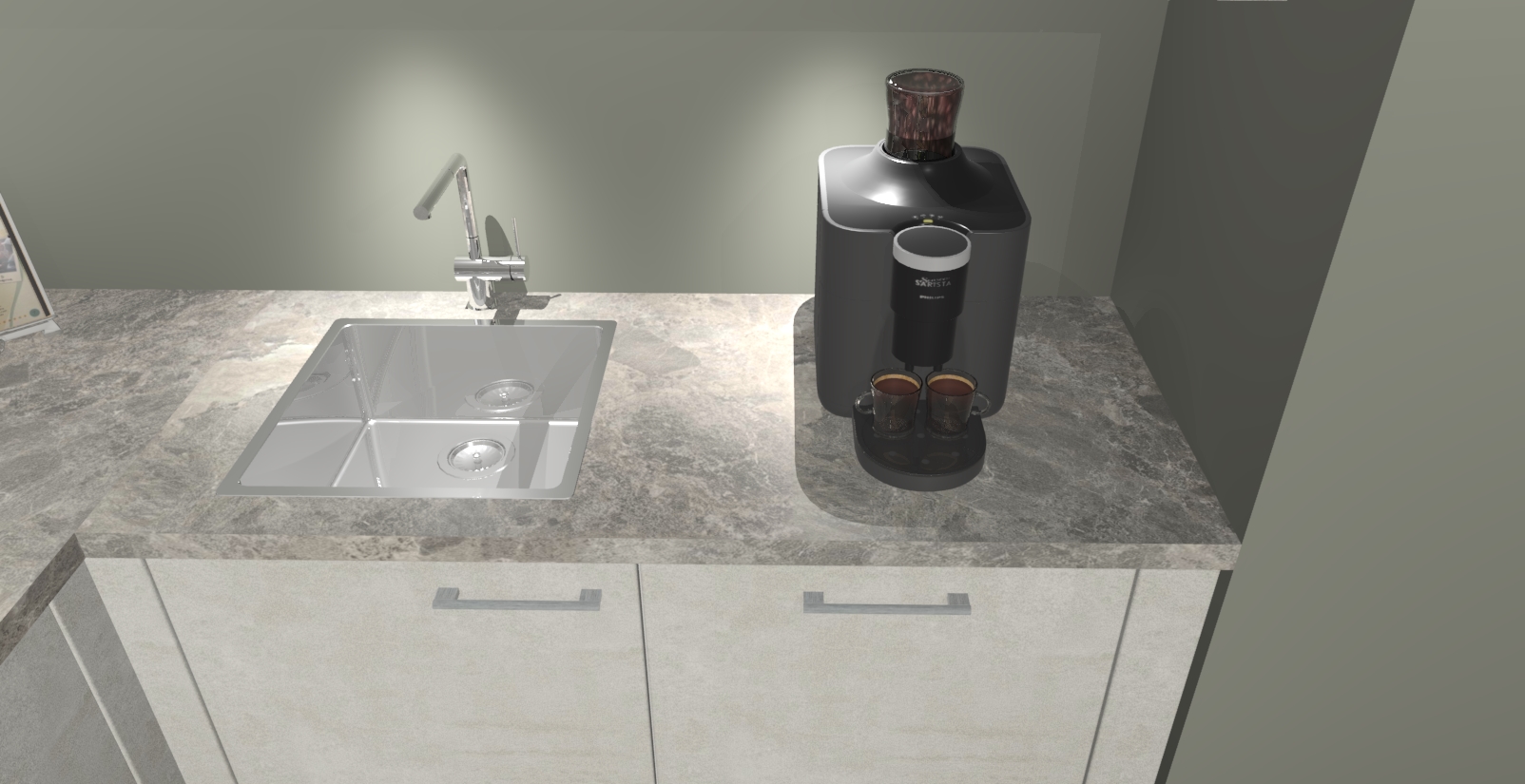 - De spoelbak is nog niet in gevreesd. Dit dient tijdens het werk gedaan te worden