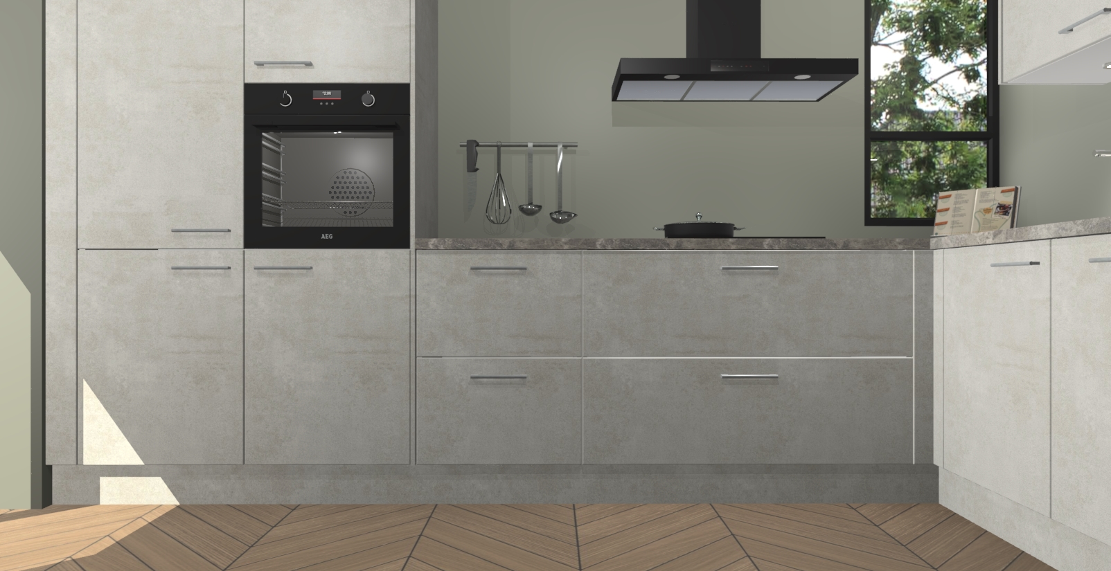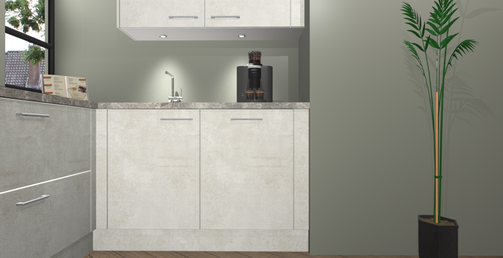 Welkom in uw nieuwe moderne keuken! Laat ons u voorstellen aan de Beton Opal keuken Vlaanderen . Deze prachtige hoekkeuken straalt exclusiviteit en luxe uit als geen ander. Het strakke design, de tijdloze kleuren en het model maken van deze keuken een moderne klassieker. En met voldoende opbergruimte heeft deze keuken echt voor ieder wat wils.