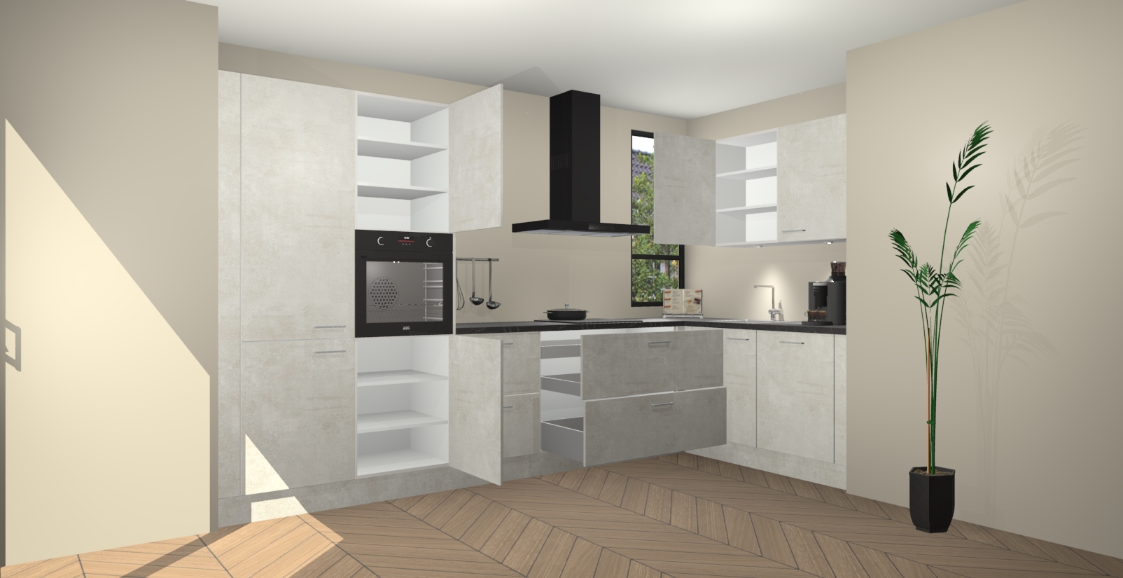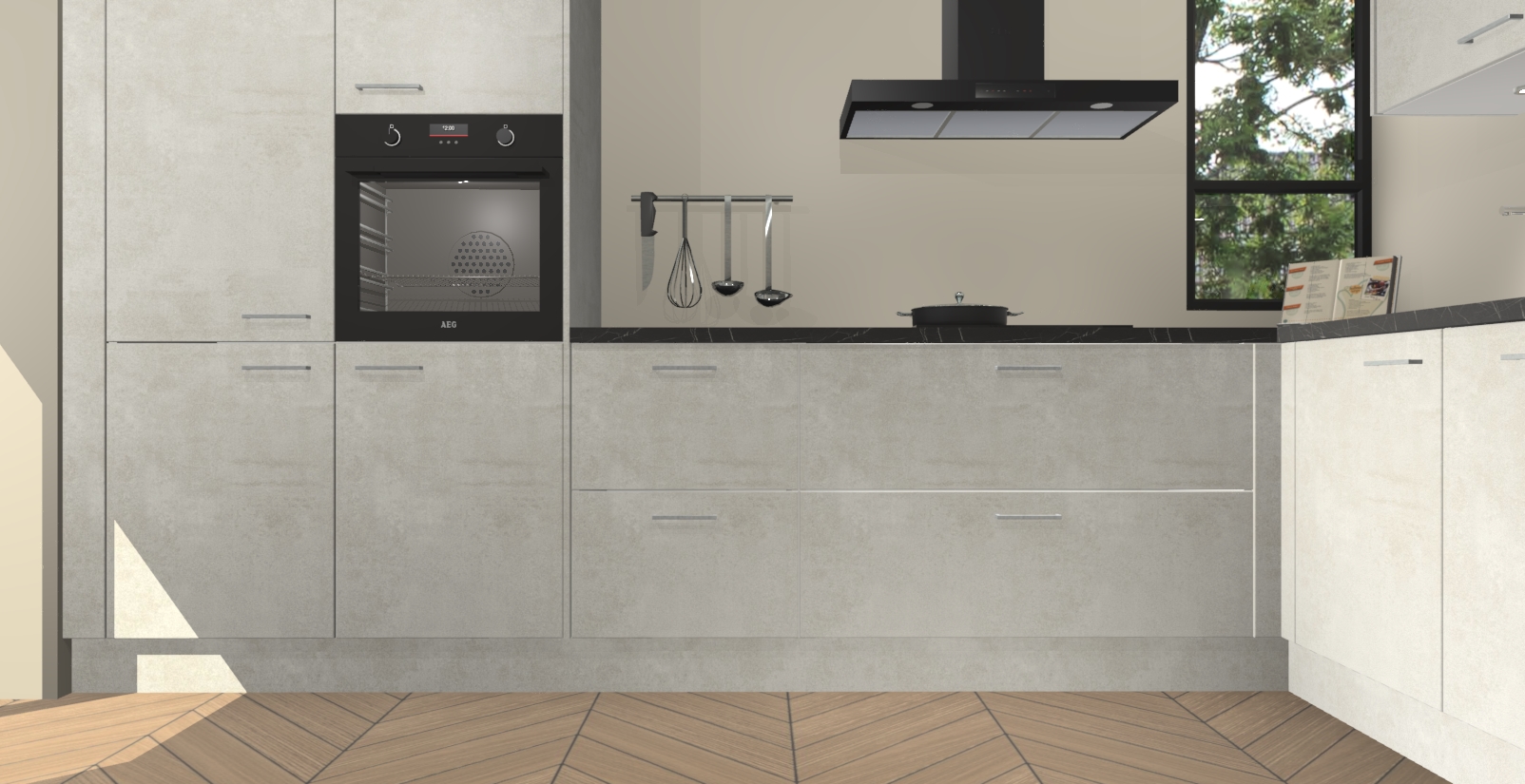 Welkom in uw nieuwe moderne keuken! Laat ons u voorstellen aan de Beton Opal keuken Vlaanderen . Deze prachtige hoekkeuken straalt exclusiviteit en luxe uit als geen ander. Het strakke design, de tijdloze kleuren en het model maken van deze keuken een moderne klassieker. En met voldoende opbergruimte heeft deze keuken echt voor ieder wat wils.
