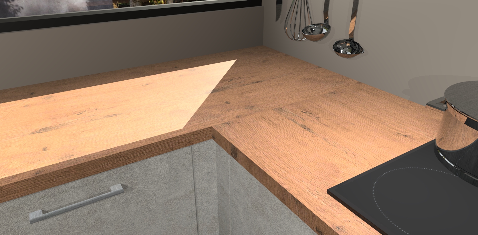 - Bij een hoekwerkblad zijn de hoeken in gevreesd en op maat gemaakt