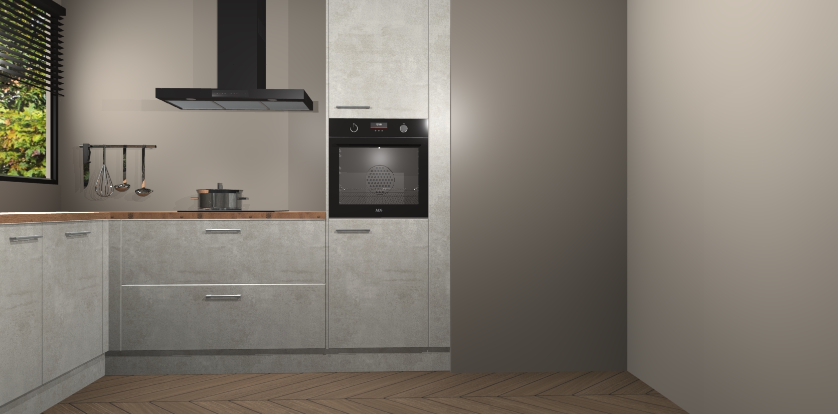 Met een modern, tijdloos design en ruime opslagruimte, zult u zich in no-time thuis voelen in uw nieuwe keuken. Uw leven wordt eenvoudiger met de soft-close deuren die voor het ultieme stille comfort zorgen - geen geluid dat u stoort terwijl u kookt. Ook is de keuken voorzien van 5 ingebouwde apparaten: een oven, inductie kookplaat, afzuigkap, vaatwasser en koelkast. Deze kunnen gemakkelijk na bestelling worden bijgewerkt naar AEG - waardoor uw luxe ervaring compleet is.
