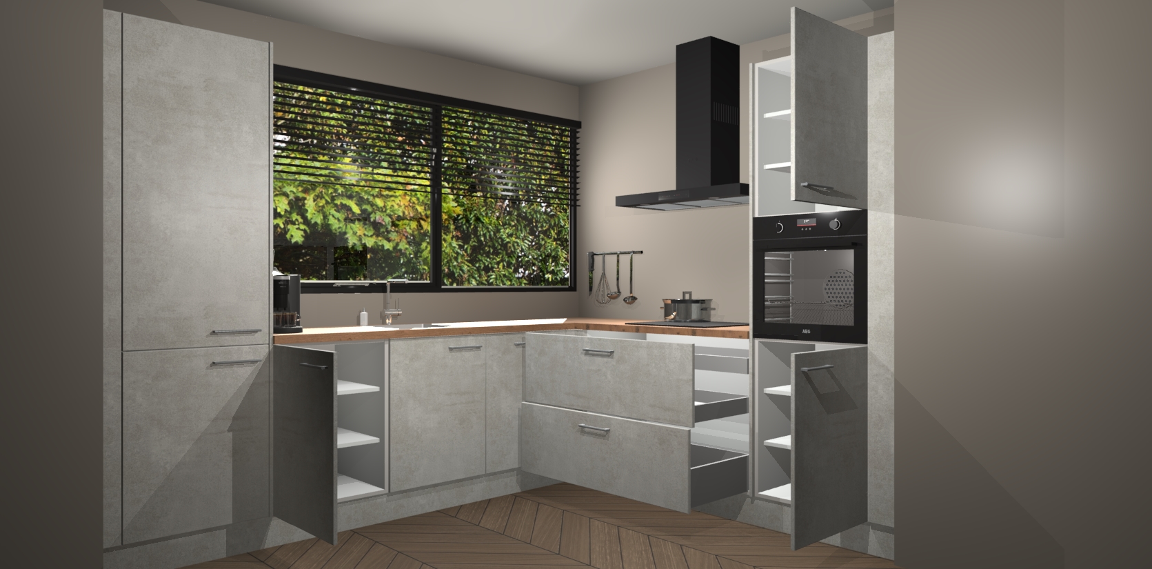 Wij presenteren de revolutie in keukens: de beton opal keuken Vogar. Met modern design, een tijdloos uiterlijk en kasten die al voor gemonteerd worden geleverd, laat deze stijlvolle keuken uw kookervaring op een hele nieuwe manier transformeren.