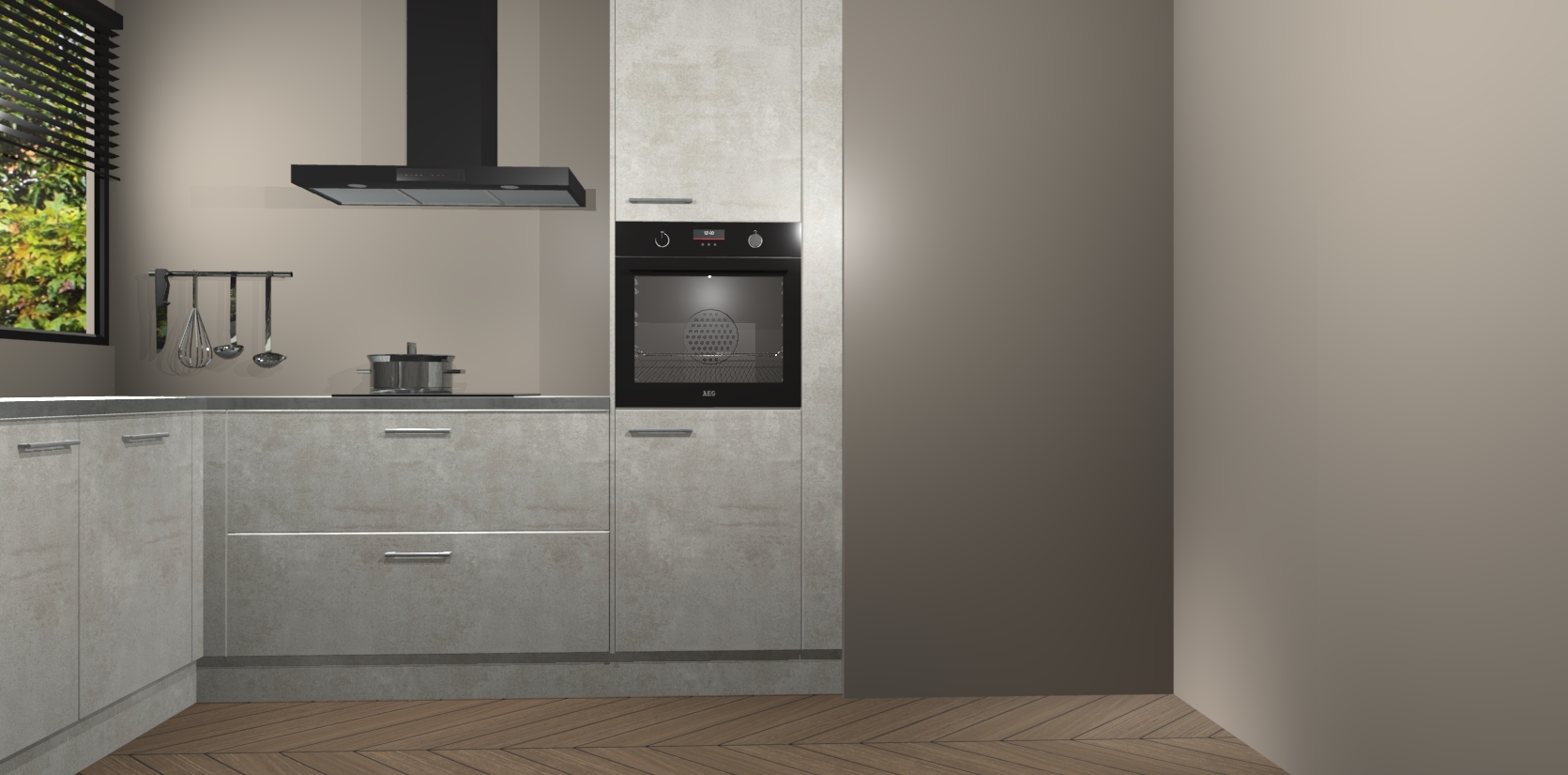 Met een modern, tijdloos design en ruime opslagruimte, zult u zich in no-time thuis voelen in uw nieuwe keuken. Uw leven wordt eenvoudiger met de soft-close deuren die voor het ultieme stille comfort zorgen - geen geluid dat u stoort terwijl u kookt. Ook is de keuken voorzien van 5 ingebouwde apparaten: een oven, inductie kookplaat, afzuigkap, vaatwasser en koelkast. Deze kunnen gemakkelijk na bestelling worden bijgewerkt naar AEG - waardoor uw luxe ervaring compleet is.