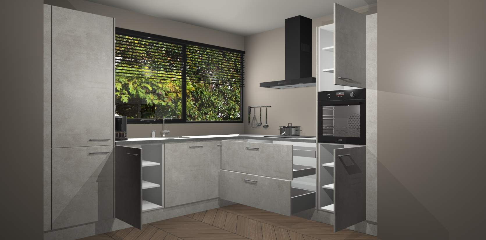 Wij presenteren de revolutie in keukens: de beton opal keuken Vogar. Met modern design, een tijdloos uiterlijk en kasten die al voor gemonteerd worden geleverd, laat deze stijlvolle keuken uw kookervaring op een hele nieuwe manier transformeren.
