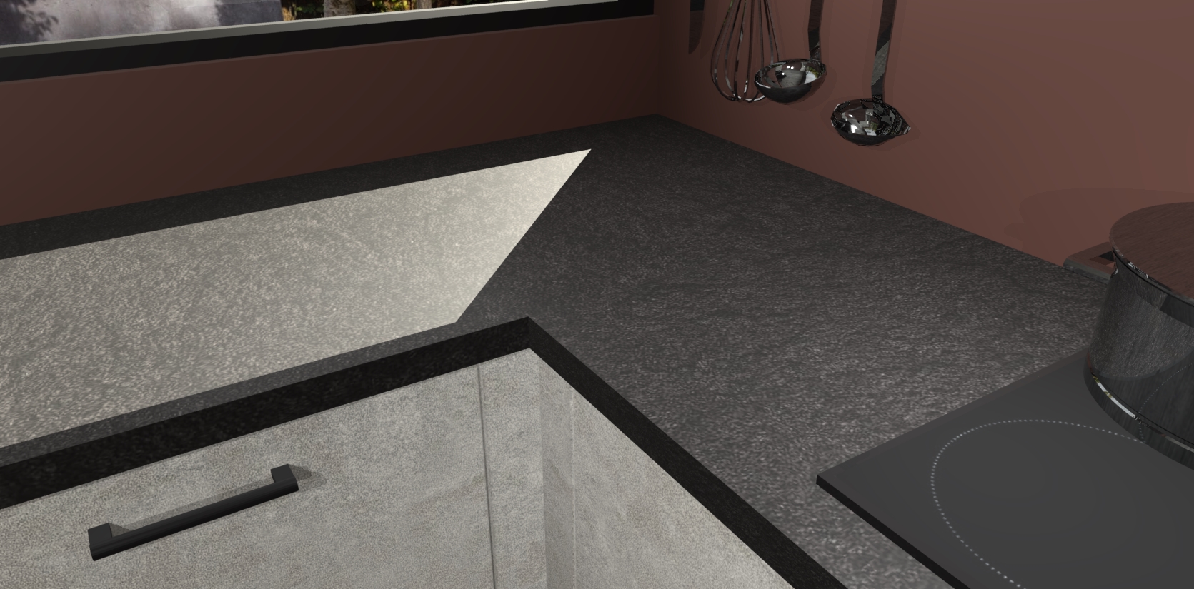 - Bij een hoekwerkblad zijn de hoeken in gevreesd en op maat gemaakt