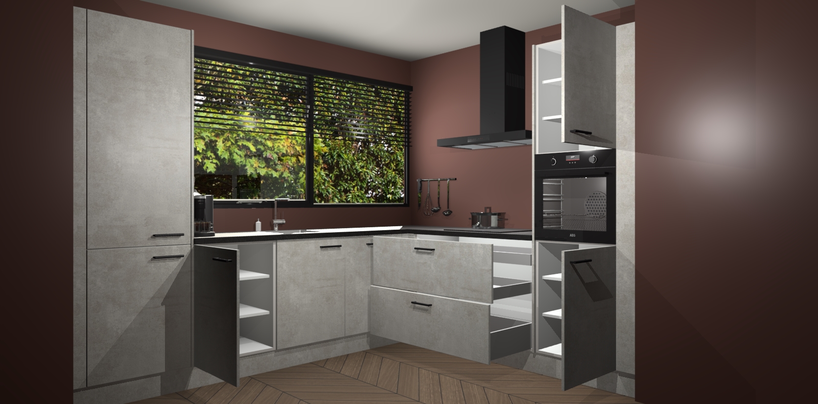 Wij presenteren de revolutie in keukens: de beton opal keuken Vogar. Met modern design, een tijdloos uiterlijk en kasten die al voor gemonteerd worden geleverd, laat deze stijlvolle keuken uw kookervaring op een hele nieuwe manier transformeren.
