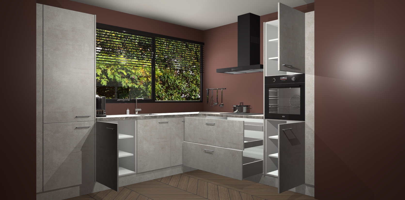 Wij presenteren de revolutie in keukens: de beton opal keuken Vogar. Met modern design, een tijdloos uiterlijk en kasten die al voor gemonteerd worden geleverd, laat deze stijlvolle keuken uw kookervaring op een hele nieuwe manier transformeren.
