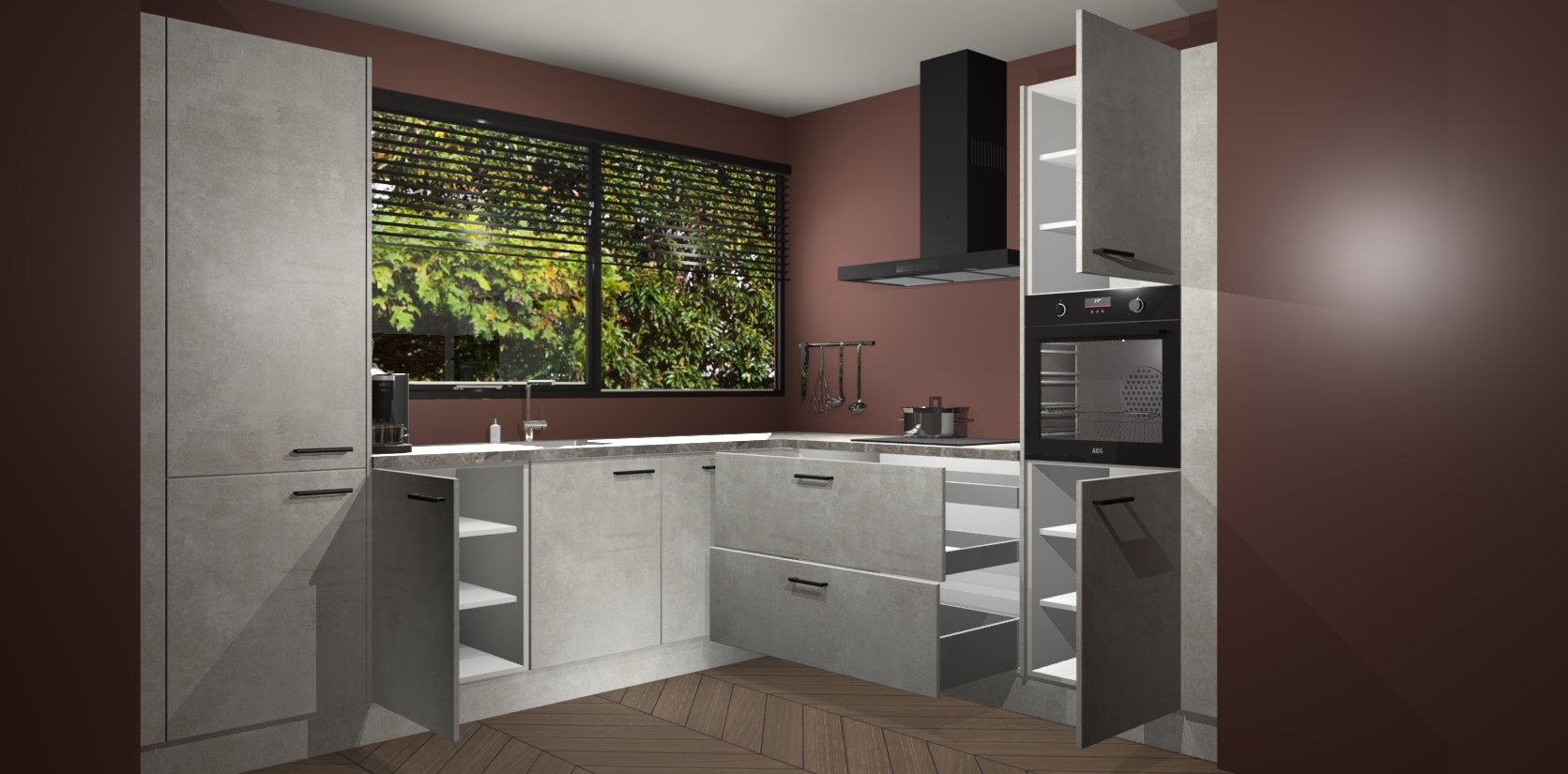 Wij presenteren de revolutie in keukens: de beton opal keuken Vogar. Met modern design, een tijdloos uiterlijk en kasten die al voor gemonteerd worden geleverd, laat deze stijlvolle keuken uw kookervaring op een hele nieuwe manier transformeren.