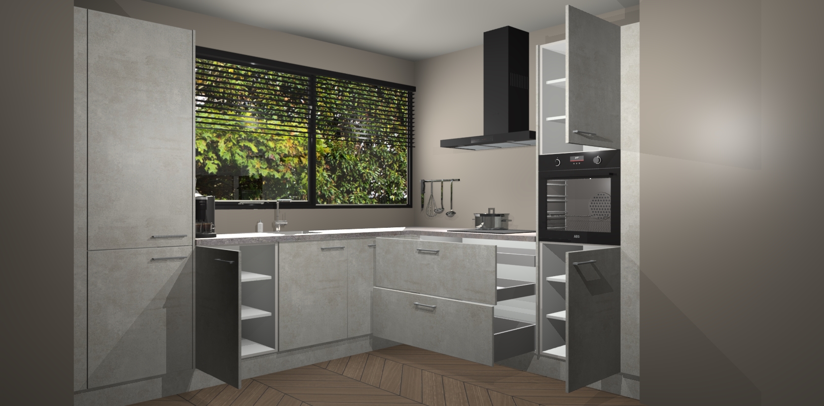 Wij presenteren de revolutie in keukens: de beton opal keuken Vogar. Met modern design, een tijdloos uiterlijk en kasten die al voor gemonteerd worden geleverd, laat deze stijlvolle keuken uw kookervaring op een hele nieuwe manier transformeren.