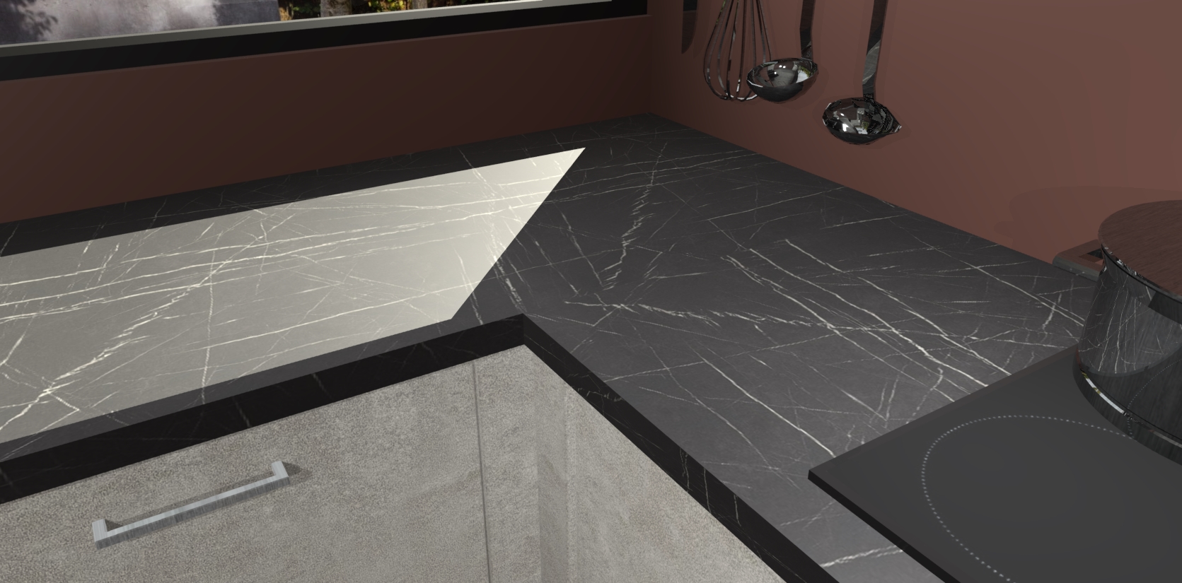 • Bij een hoekwerkblad zijn de hoeken in gevreesd en op maat gemaakt