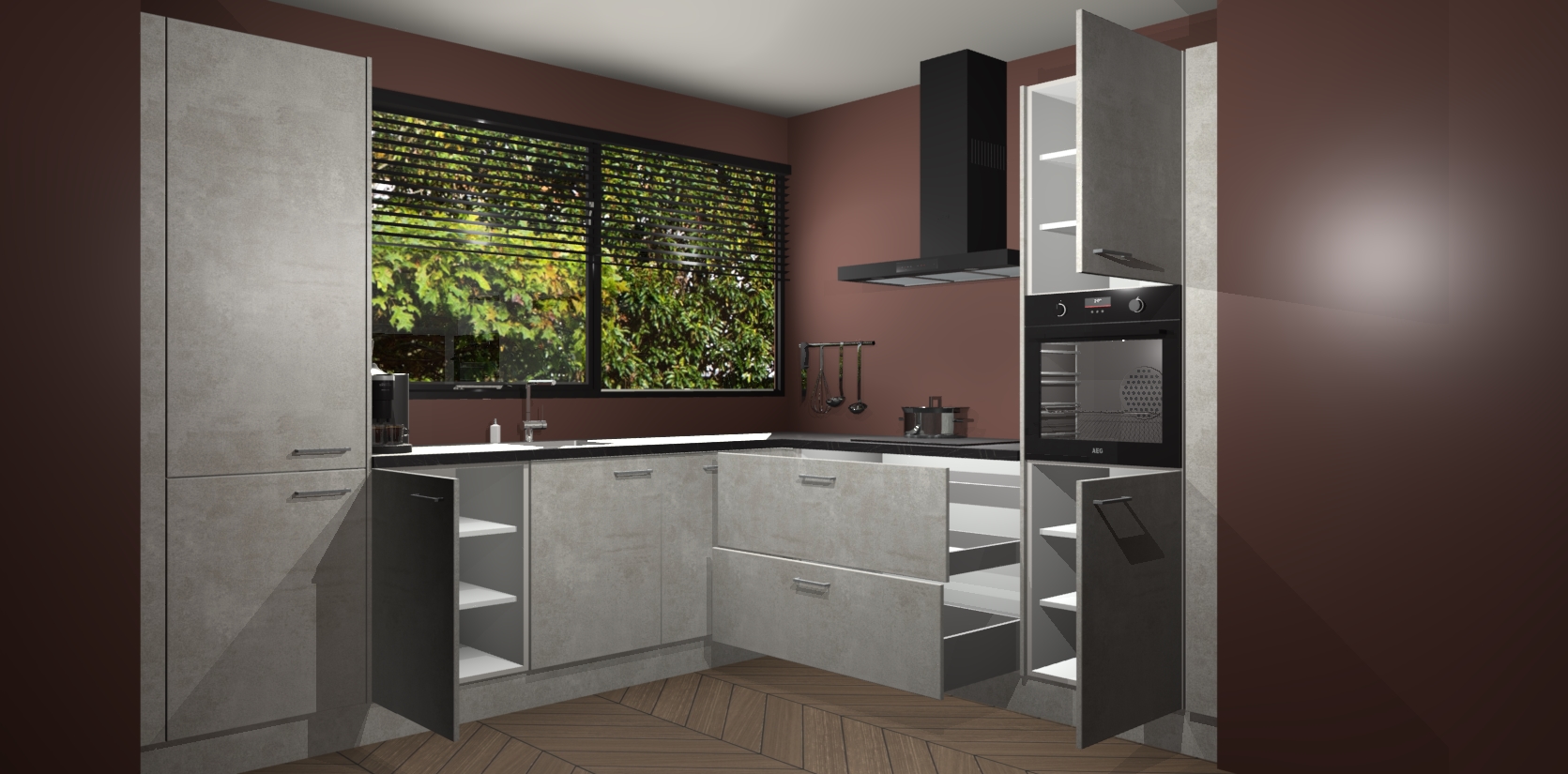 Wij presenteren de revolutie in keukens: de beton opal keuken Vogar. Met modern design, een tijdloos uiterlijk en kasten die al voor gemonteerd worden geleverd, laat deze stijlvolle keuken uw kookervaring op een hele nieuwe manier transformeren.
