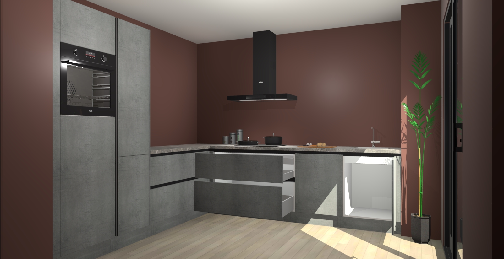 Inclusief plinten, stelpoten en werkblad