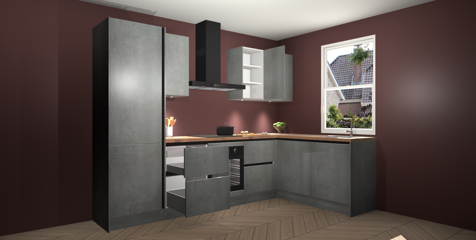 Inclusief plinten, stelpoten en werkblad
