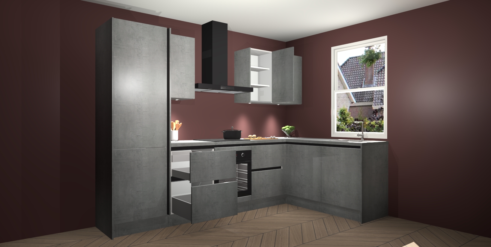Inclusief plinten, stelpoten en werkblad