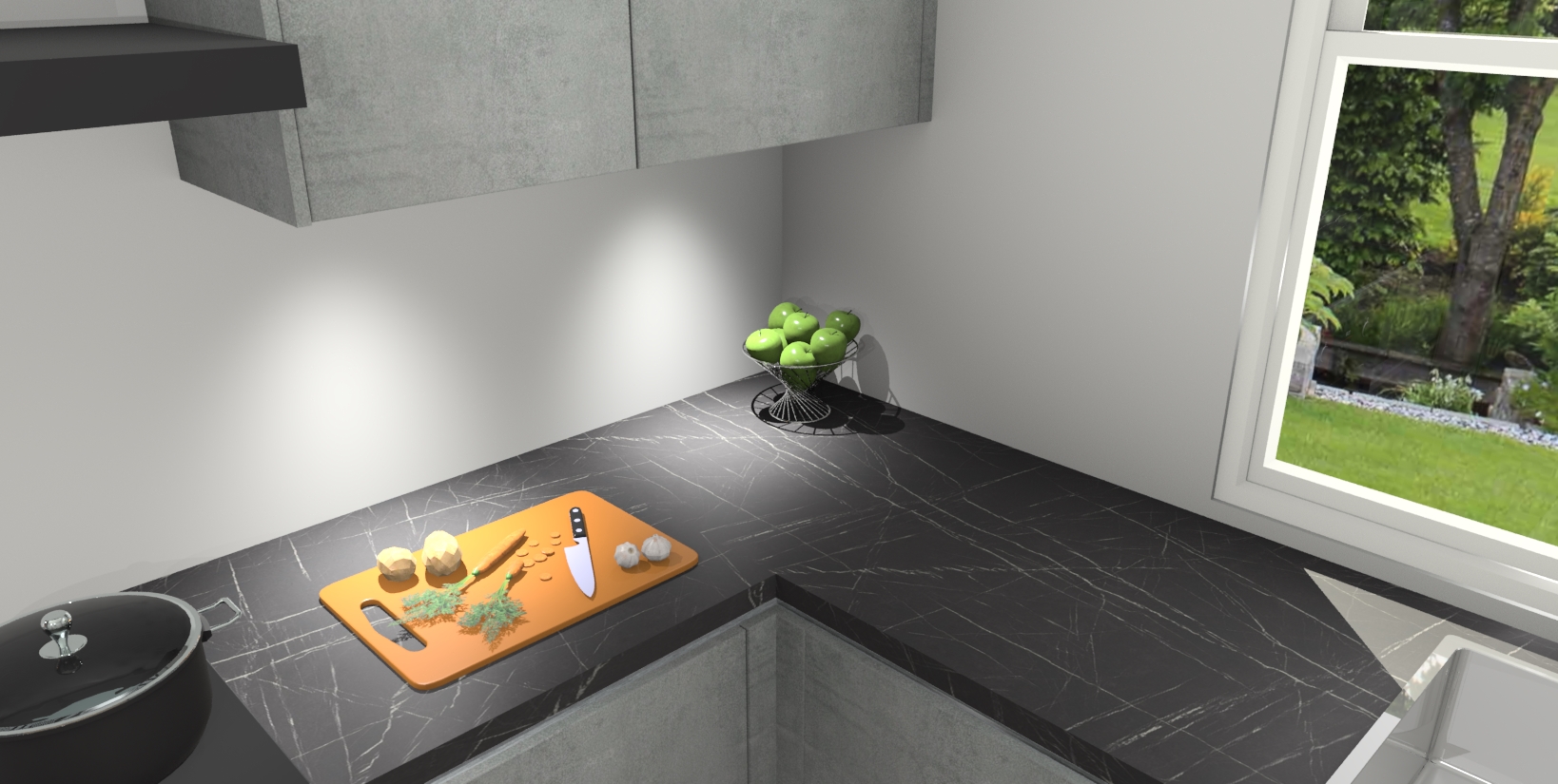 - Bij een hoekwerkblad zijn de hoeken in gevreesd en op maat gemaakt