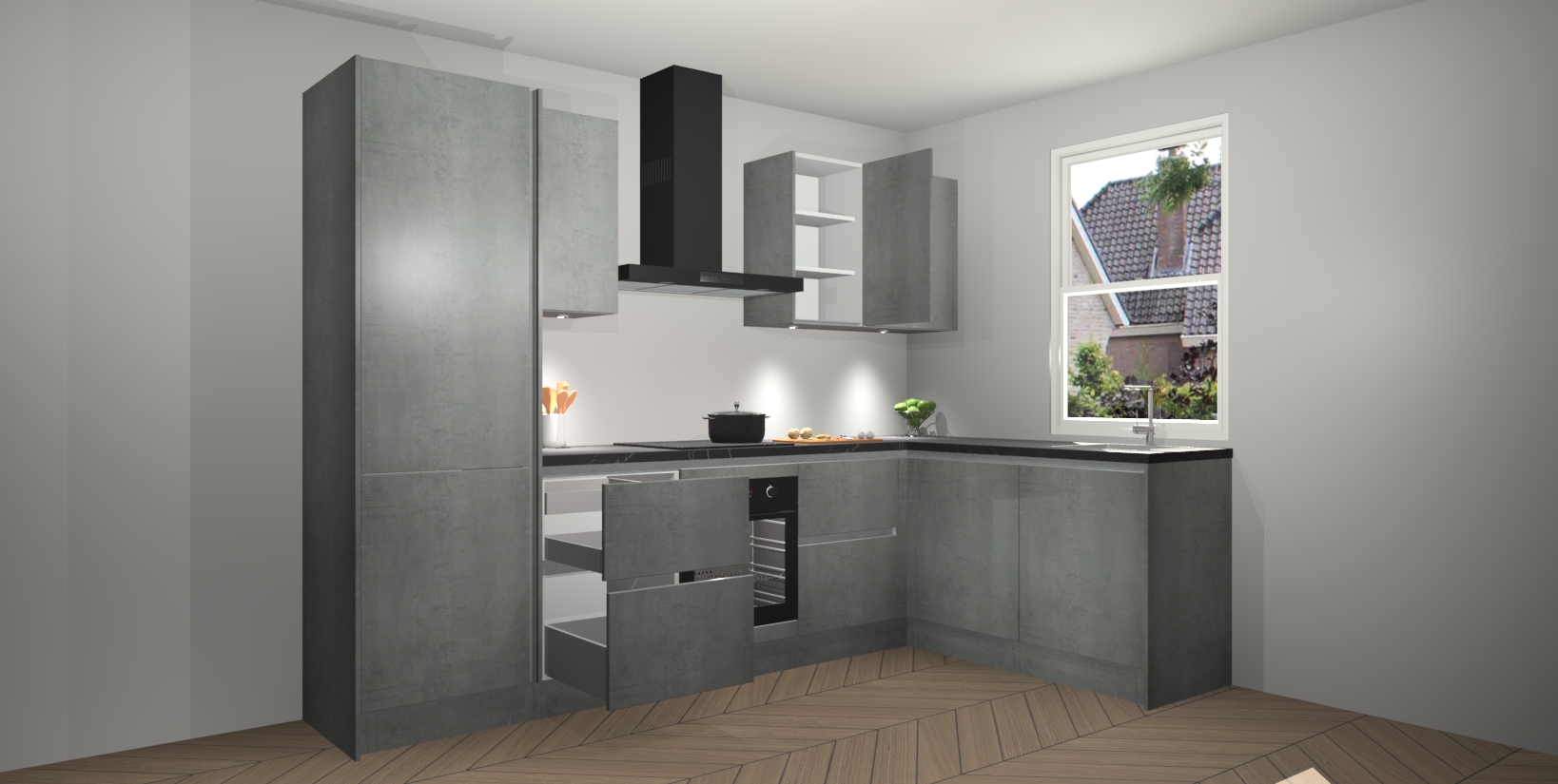 Maak kennis met de trendsettende en luxe Beton Parelgrijs greeploze keuken Bazel! Deze uitzonderlijke keuken van Duitse kwaliteit is stijlvol, modern en perfect om elk huis mee op te fleuren. De binnenkant van de kasten worden meegenomen in een bijpassende kleur om een samenhangende eigentijdse esthetiek te voltooien. U zult dol zijn op hoe uw pas gerenoveerde keuken eruitziet met de Beton Parelgrijs editie!